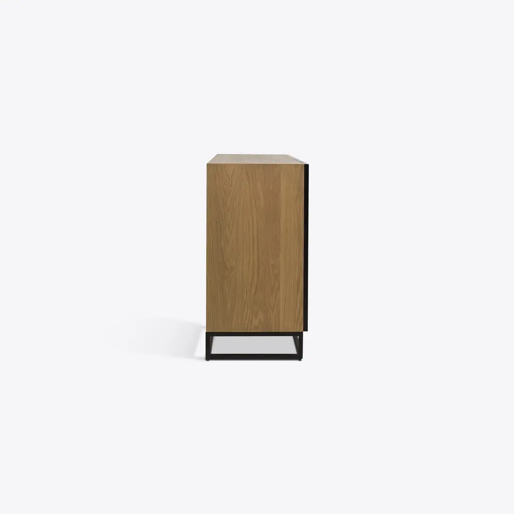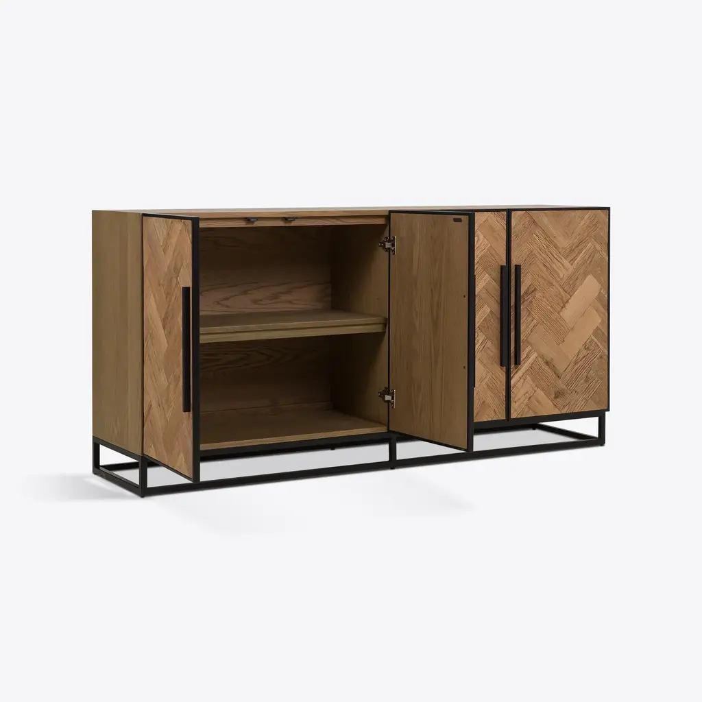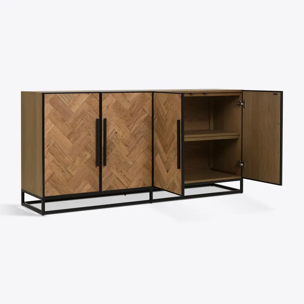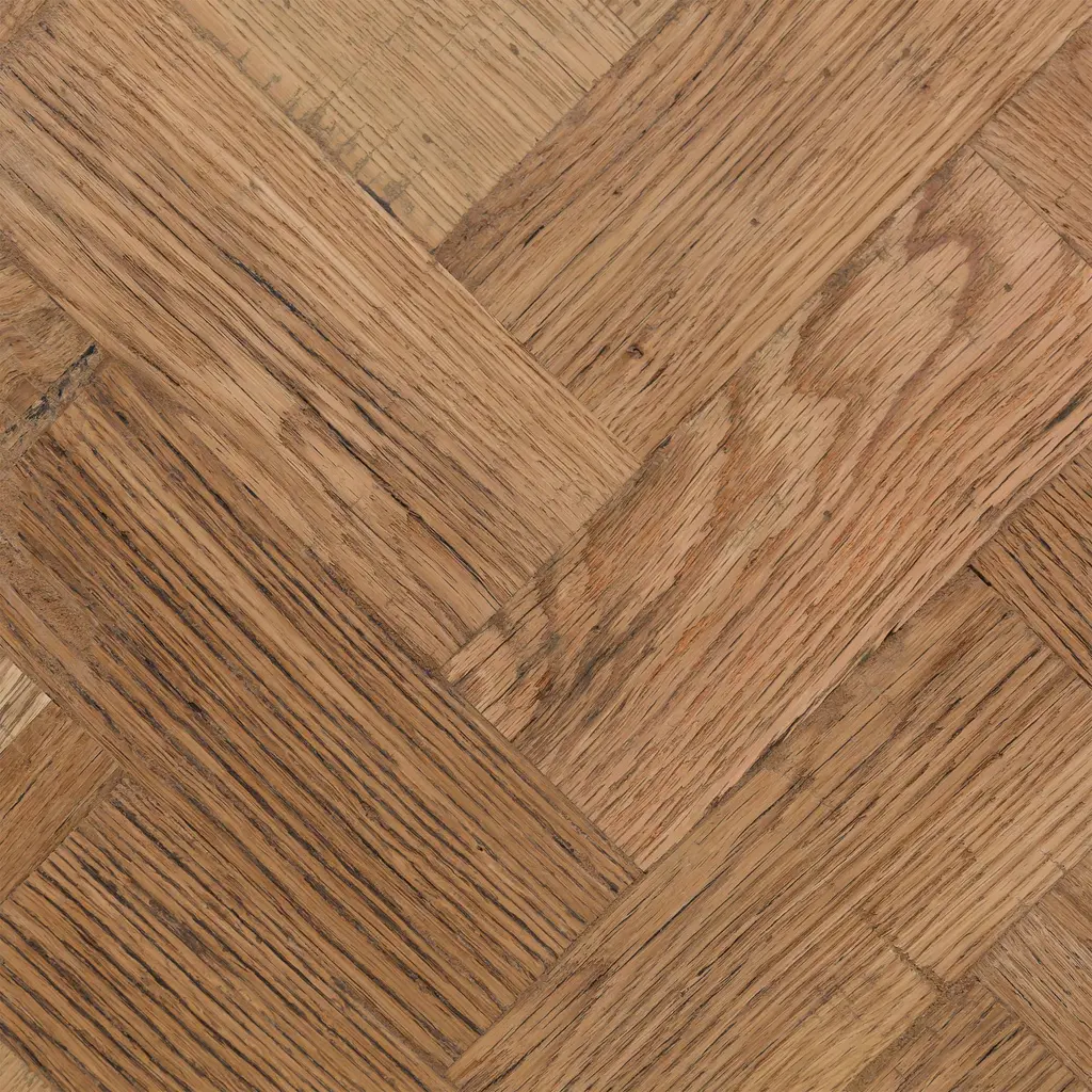 Stylish, modern living room storage made from reclaimed oak in a natural parquetry finish. Numbered