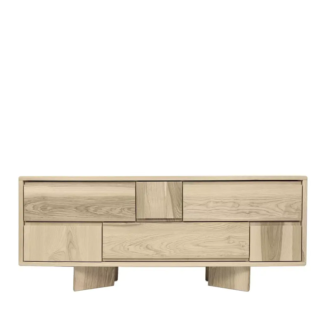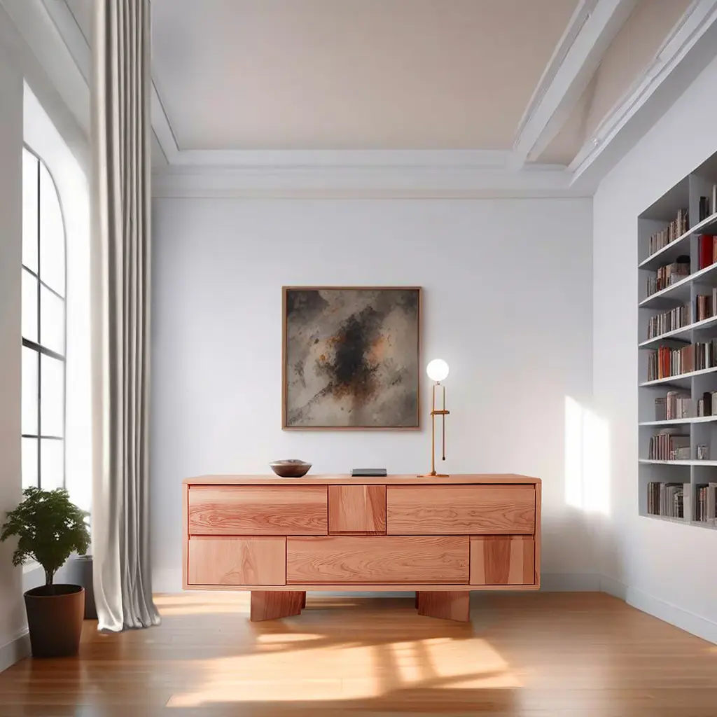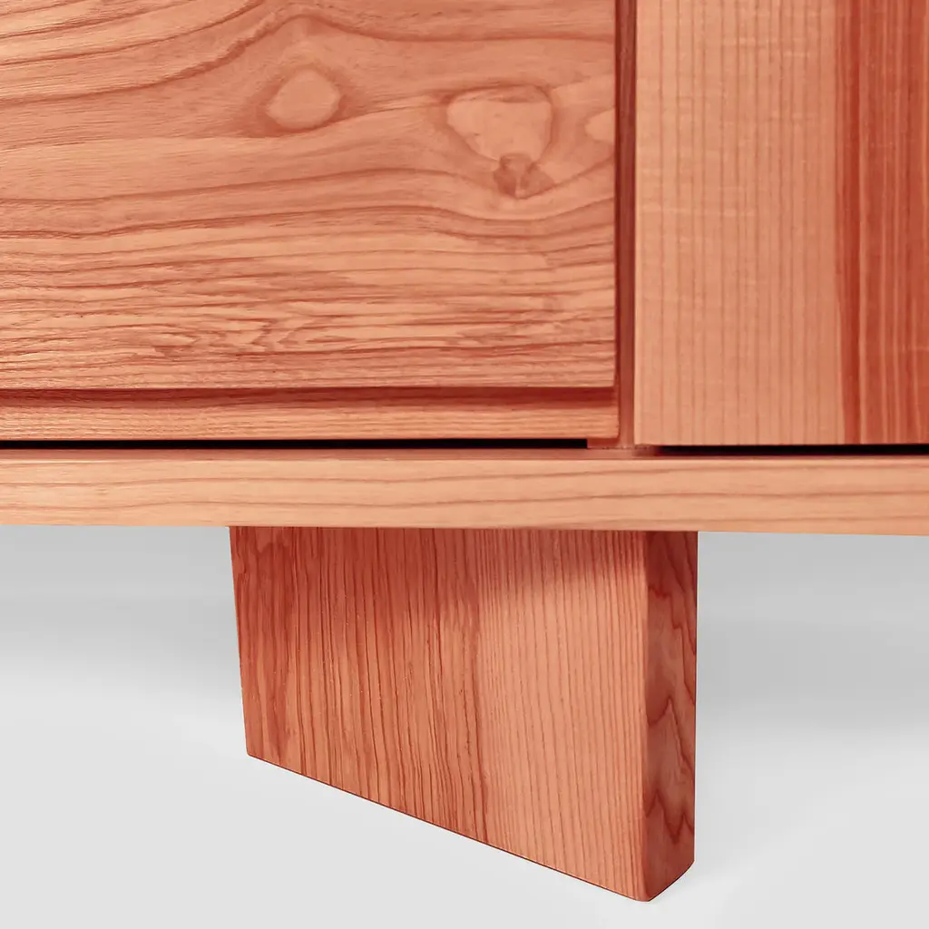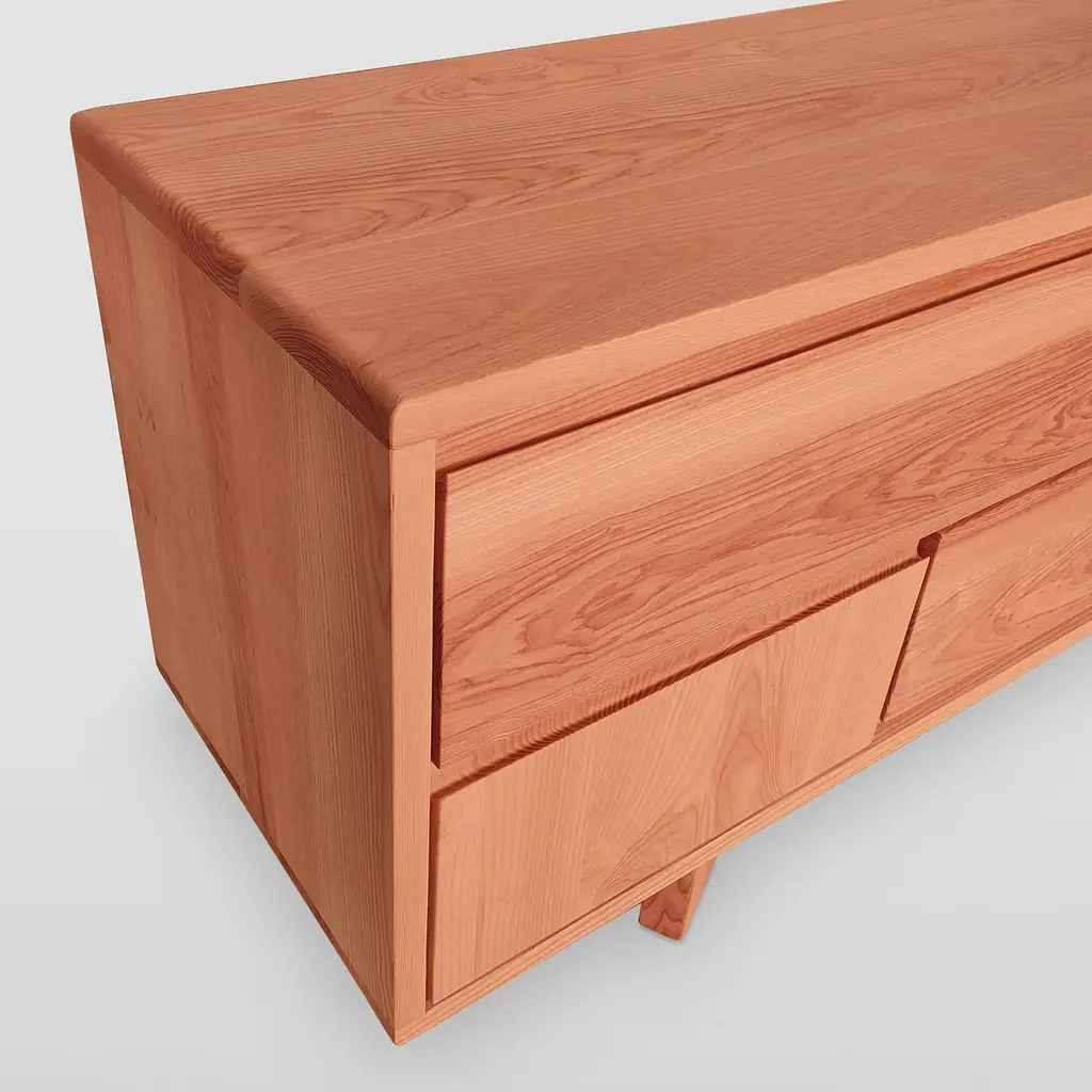 An intense, orange-brown shade describes the lively character of this stupendous sideboard, unique creation by Eugenio Gambella. Boasting a minimalist style of nordic inspiration, it is comprised of six 50 kg-capacity drawers with BLUM metal hinges and a blumotion closing system. Finished with rounded corners and edges, it is lacquered with water-based paint and polished by hand with beeswax. Care instructions included with purchase.