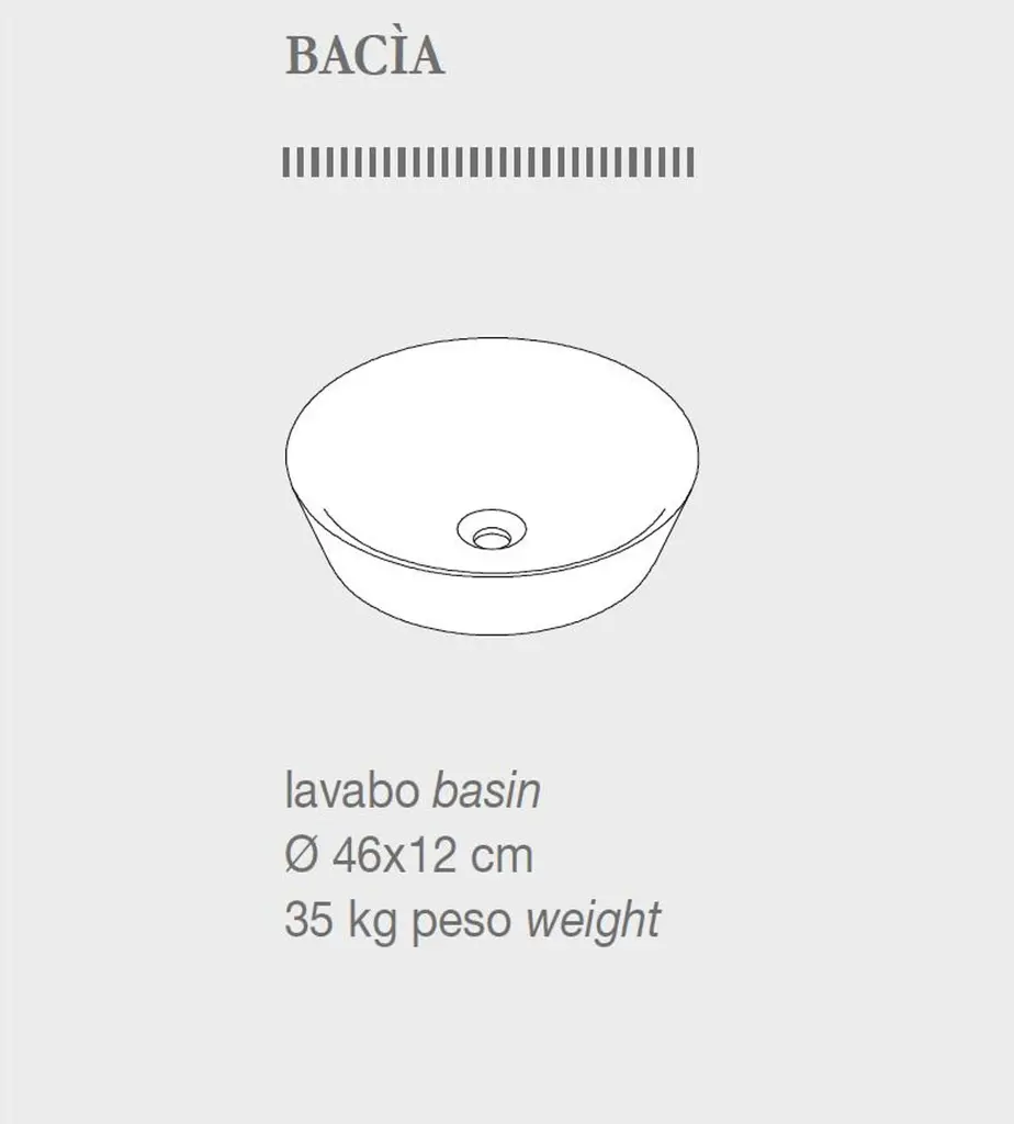 The "Escavo" collection composed by Bacìa, Balde, and Banheira - the Portuguese names for the simplest water holders - are bath elements designed by Manuel Aires Mateus. Cavity is a recurring theme of study in the Portuguese architect’s designing activity, faced this time in the product design scale for the bathroom furnishing; the collection is simple and conceptually immediate, offering archetypical shapes as the bucket, the tub, and the bowl. These elementary, somehow rudimentary, objects get on their edges refined and subtle profiles typical, in their curves, of the vases and the chinaware. The "Bacìa" sink comes in any dimensions, finishes and stones.