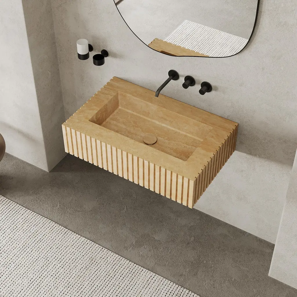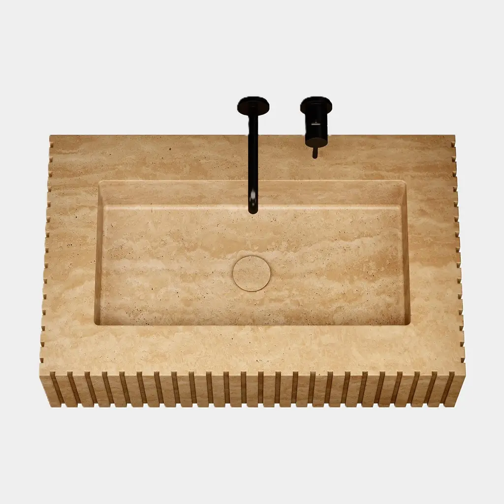 Luca - Ribbed Marble Basin - Beige Travertine - Medium