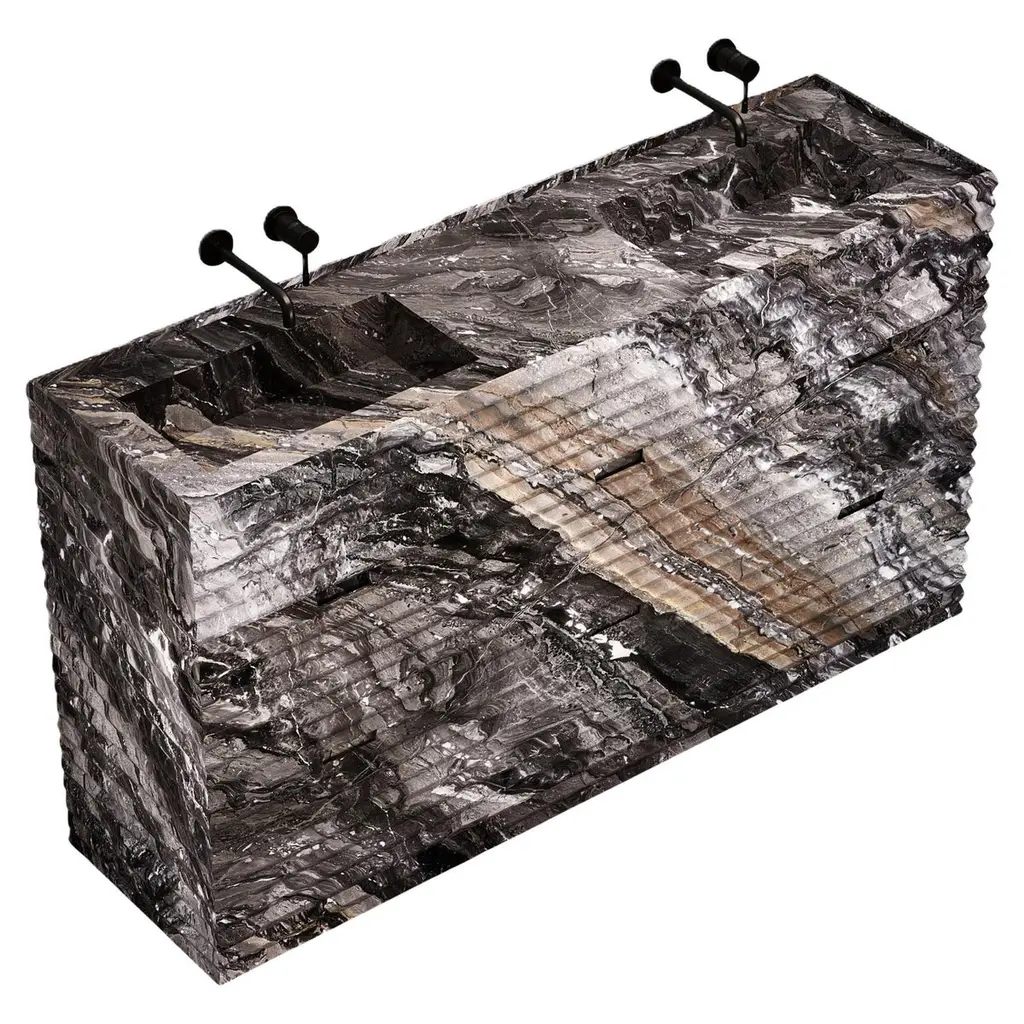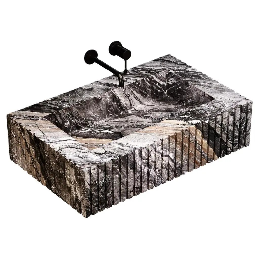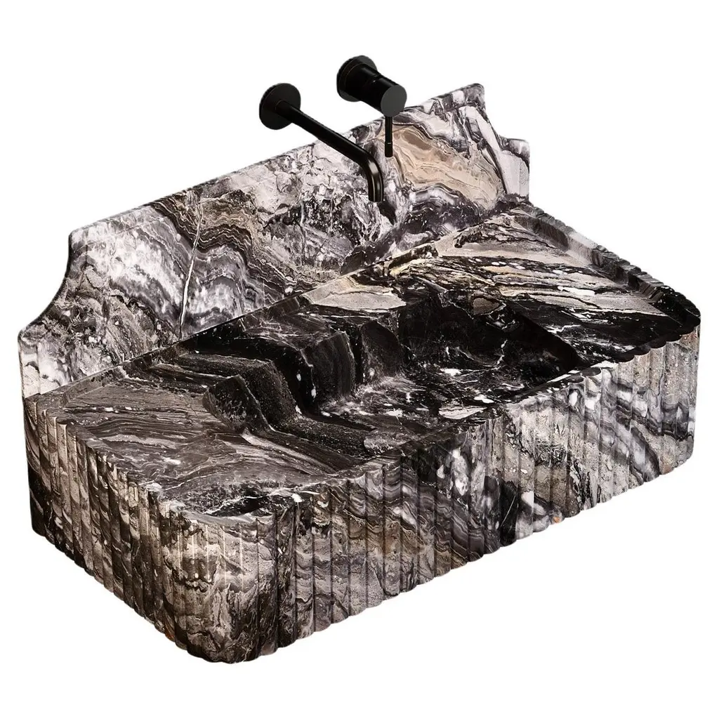 Luca - Ribbed Marble Basin - Grey Galaxy - Small