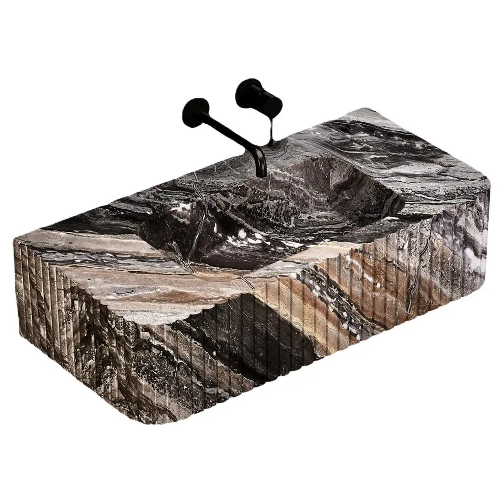 Accentuate your bathroom space with our Ribbed Marble Basin, a perfect fusion of minimalist design and natural elegance. The beautiful ribbed detailing creates a unique visual appeal while highlighting the unique veining and texture of the marble, offering a luxurious touch to your bathroom Available in a variety of marble options, allowing you to select the perfect color and texture to match your unique design vision. The water supply kit, drain assembly, and faucets are not included however our installation manual is included to assist!As marble is a natural material, variations in background color, veining distribution, and patterns are to be expected, making each piece uniquely beautiful.Dimensions: 605020