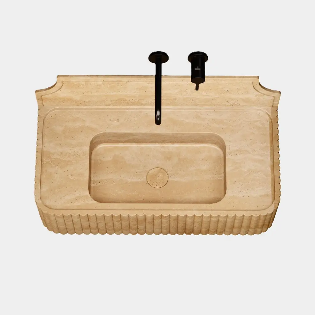 Skive - Ribbed Marble Basin - Beige Travertine - Small