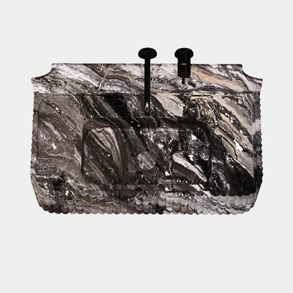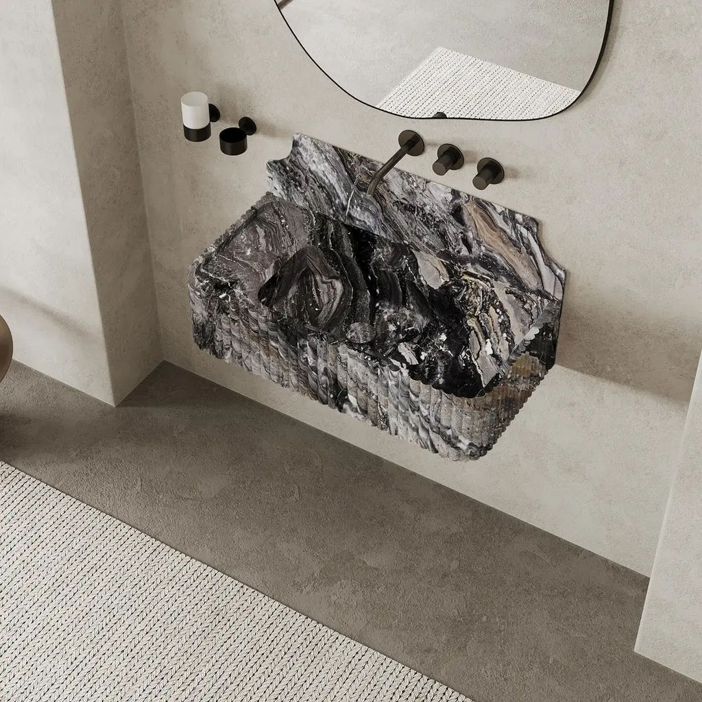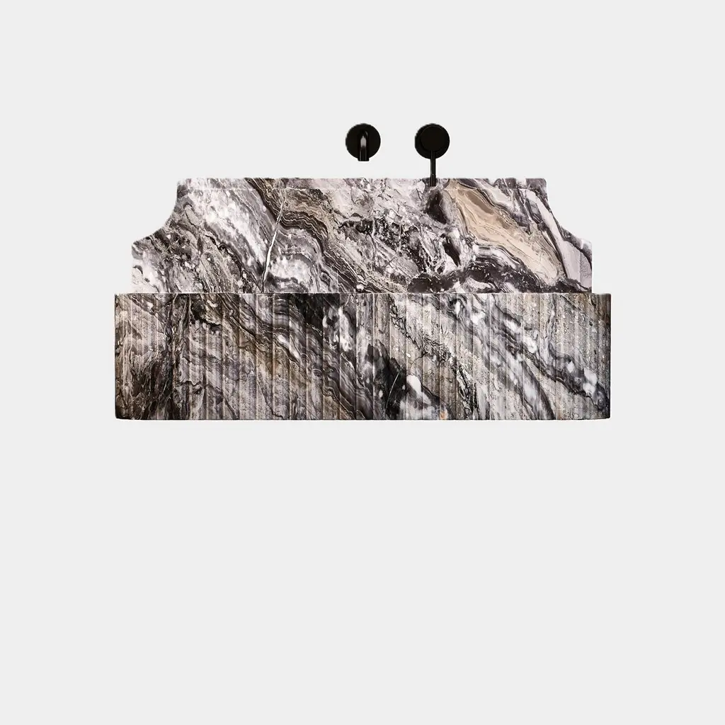 Accentuate your bathroom space with our beautiful Skive Ribbed Marble Basin, a perfect fusion of minimalist design and natural elegance. The beautiful ribbed detailing creates a unique visual appeal while highlighting the unique veining and texture of the marble, with a convenient backsplash that offers a super luxurious touch. With honed surfaces and beveled edges, this piece created an eye catching statement to your bathroom.Available in a variety of marble options, allowing you to select the perfect color and texture to match your unique design vision. The water supply kit, drain assembly, and faucets are not included however our installation manual is included to assist!As marble is a natural material, variations in background color, veining distribution, and patterns are to be expected, making each piece uniquely beautiful.Dimensions: 604040 cm