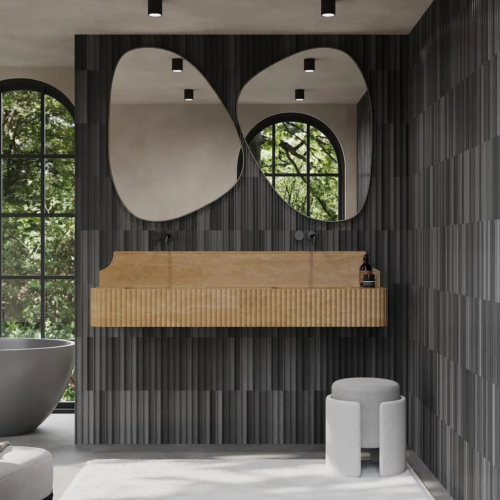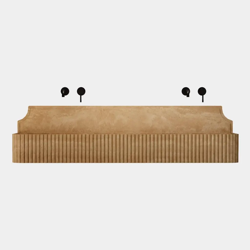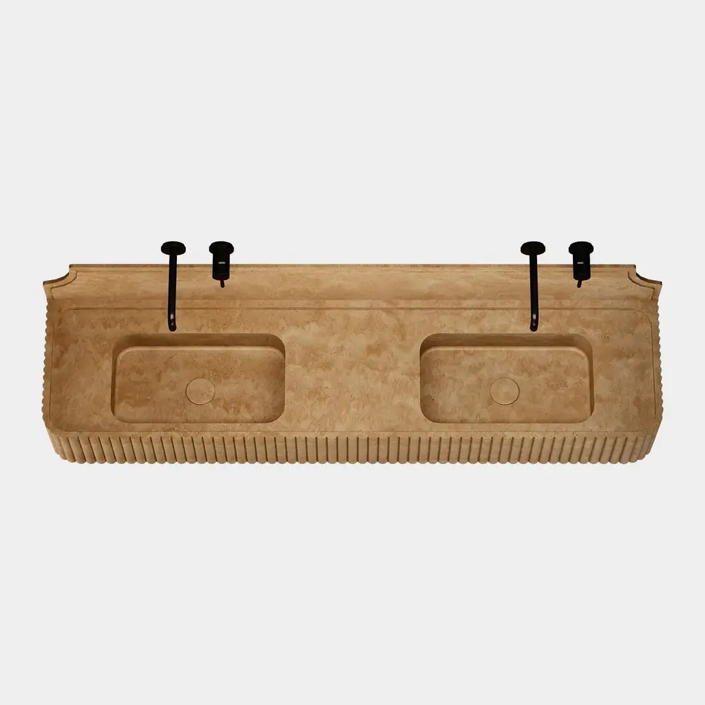 Skive - Ribbed Marble Double Basin - Beige Travertine