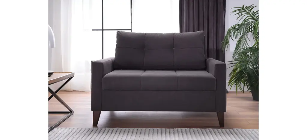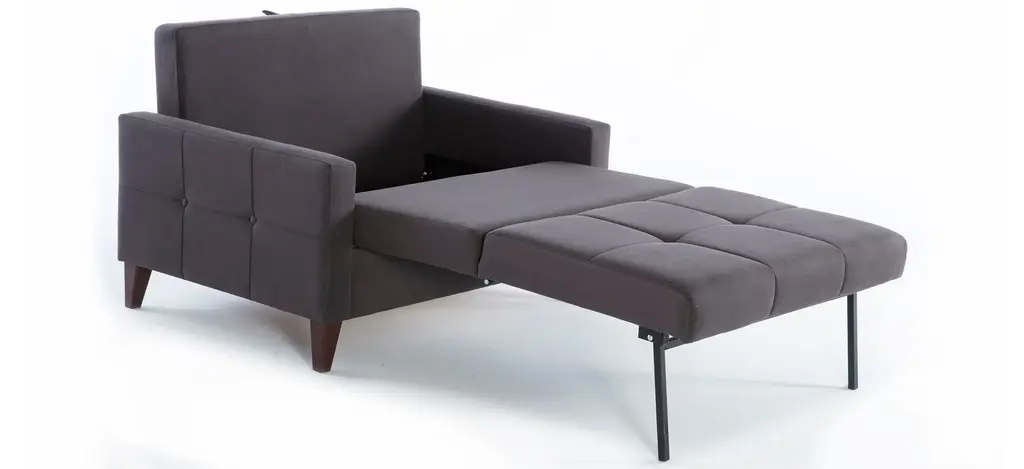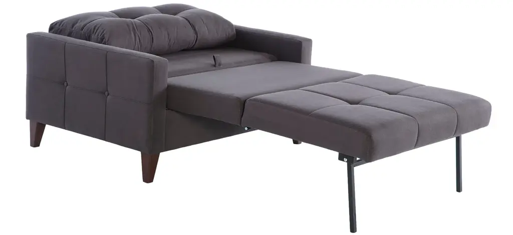 Enjoy comfort and style in its most compact and convenient form with the Lugano chair and a half. This modern oversized chair is the perfect size for one person to spread out or two people to cozy up. A modern design boasts top to bottom button-tufting, clean lines for a sharp silhouette, and tapered natural wood legs. Transform this armchair from a seat to a sleeper with satisfying convenience by pulling the seat out with the pull-tab to reveal a comfortable mattress supported by a sturdy metal base. The removable back cushion doubles as a cozy pillow perfect for catching a quick nap or hosting an overnight guest. This chair is upholstered in a buttery soft performance fabric that holds up impeccably against daily wear and tear, so you can enjoy its versatility for years to come.