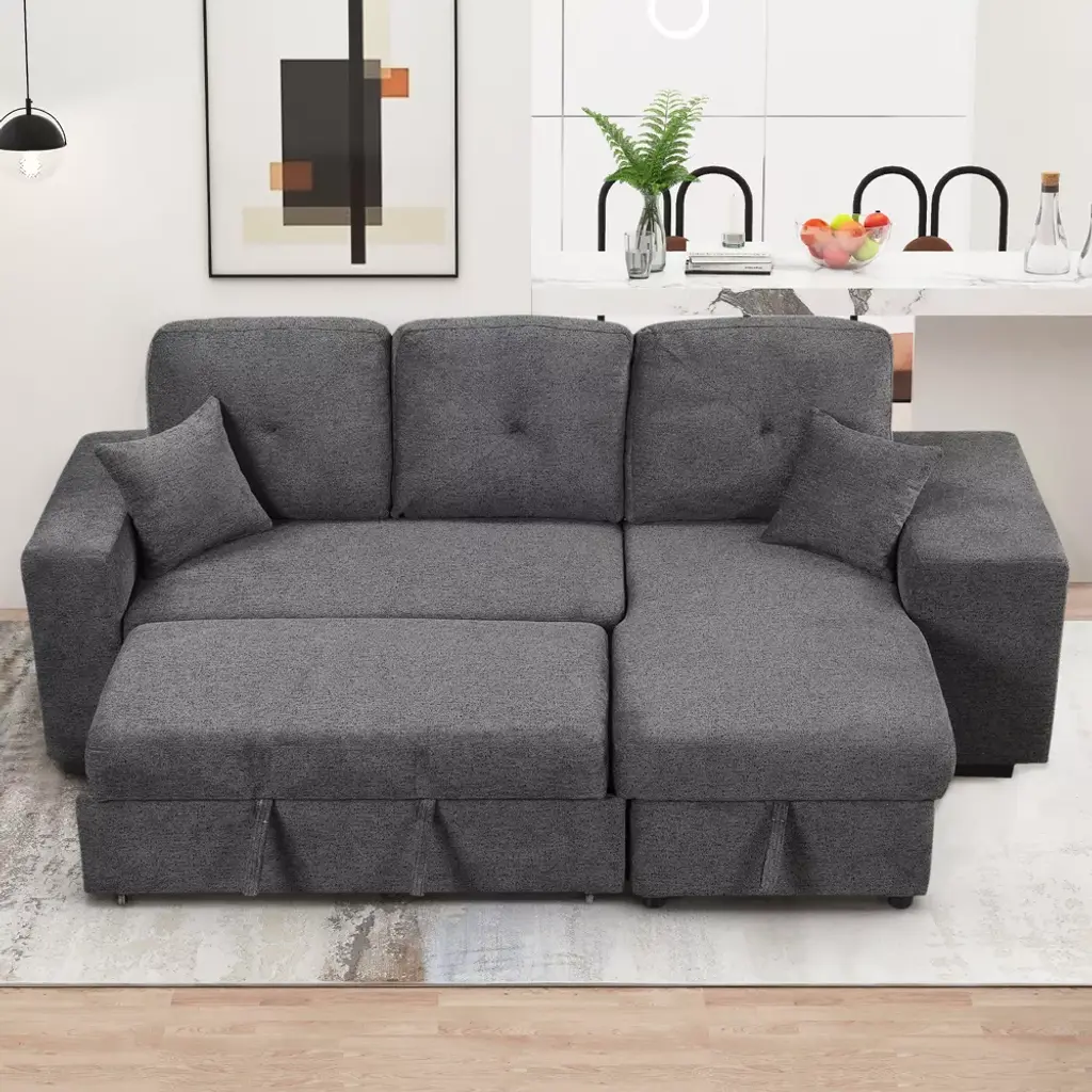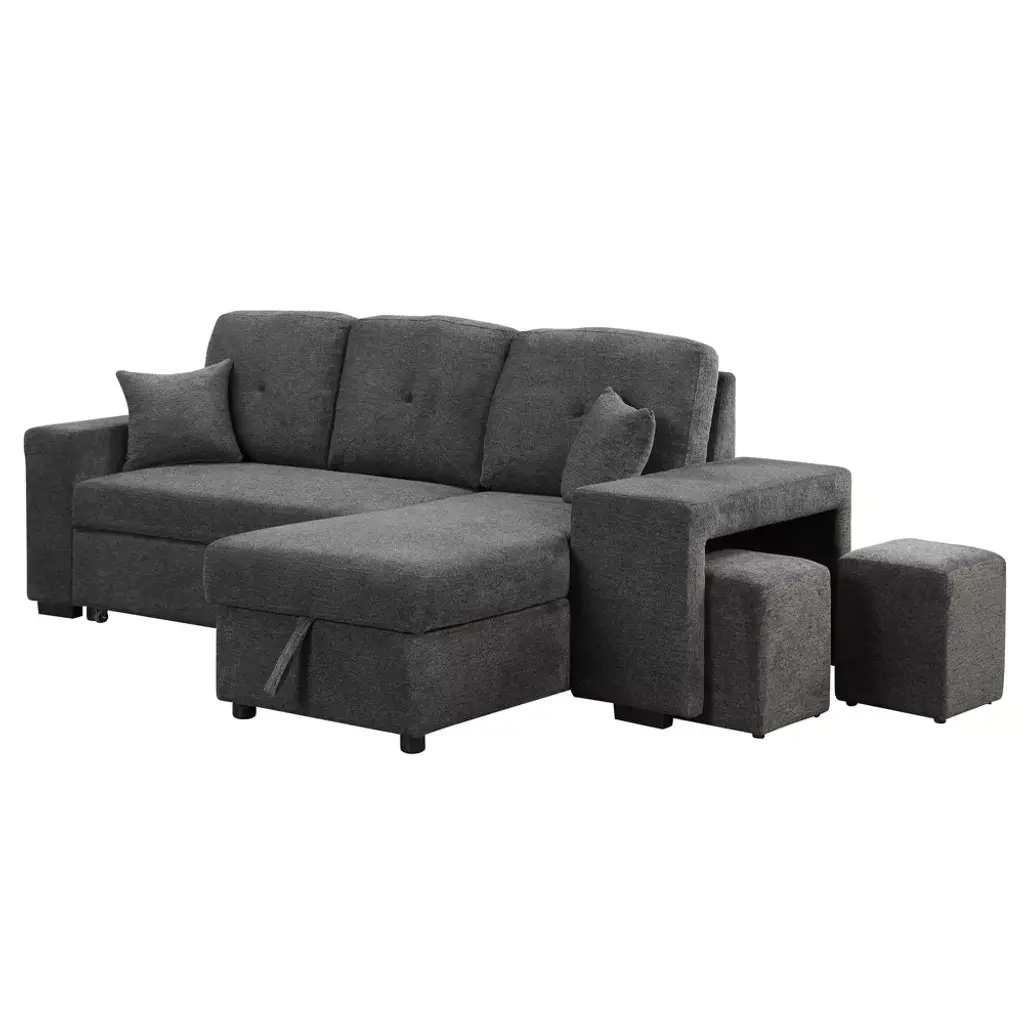 95" Pull Out Sleeper Sofa, Reversible L-Shape Sectional Couch with Storage Chaise and 2 Stools-ModernLuxe