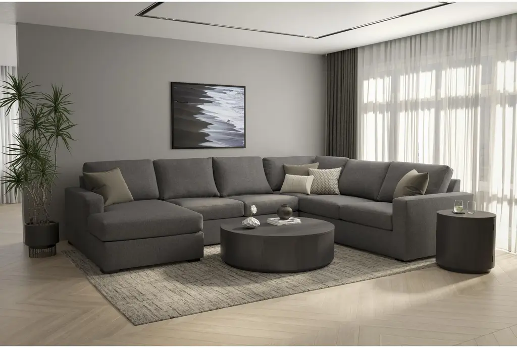 Experience ultimate comfort and modern style with the Araceli II Pewter Grey Black Fabric Modular 138" 4 Piece Full Memory Foam Sleeper U-Shaped Sectional with Left Arm Facing Chaise. This versatile sectional is perfect for any living room, offering both seating and sleeping solutions. The pewter grey fabric adds a sophisticated touch to your space, while the memory foam sleeper ensures a restful night's sleep.