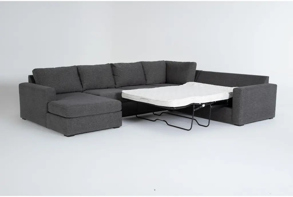 Araceli Ii Pewter Grey Black Fabric Modular 138" 4 Piece Full Memory Foam Sleeper U-Shaped Sectional With Left Arm Facing Chaise