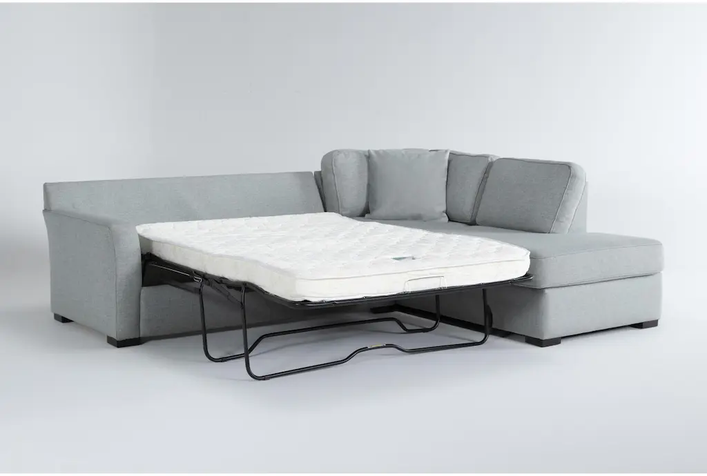 Aspen Tranquil Foam Modular 2 Piece Sleeper 108" Blue Fabric Sectional With Right Arm Facing Armless Chaise | Track Arms