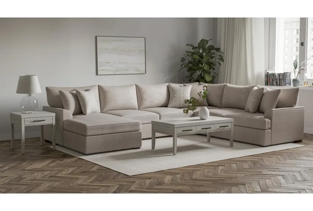Introducing the Belinha II Taupe Beige Grey Fabric 140" Modular 4 Piece Full Memory Foam Sleeper U-Shaped Sectional with Left Arm Facing Chaise, designed for ultimate comfort and functionality. This casual sectional is perfect for your living room, offering versatile seating with its modular design. The taupe fabric is made from 100% polyester, ensuring durability and easy maintenance.