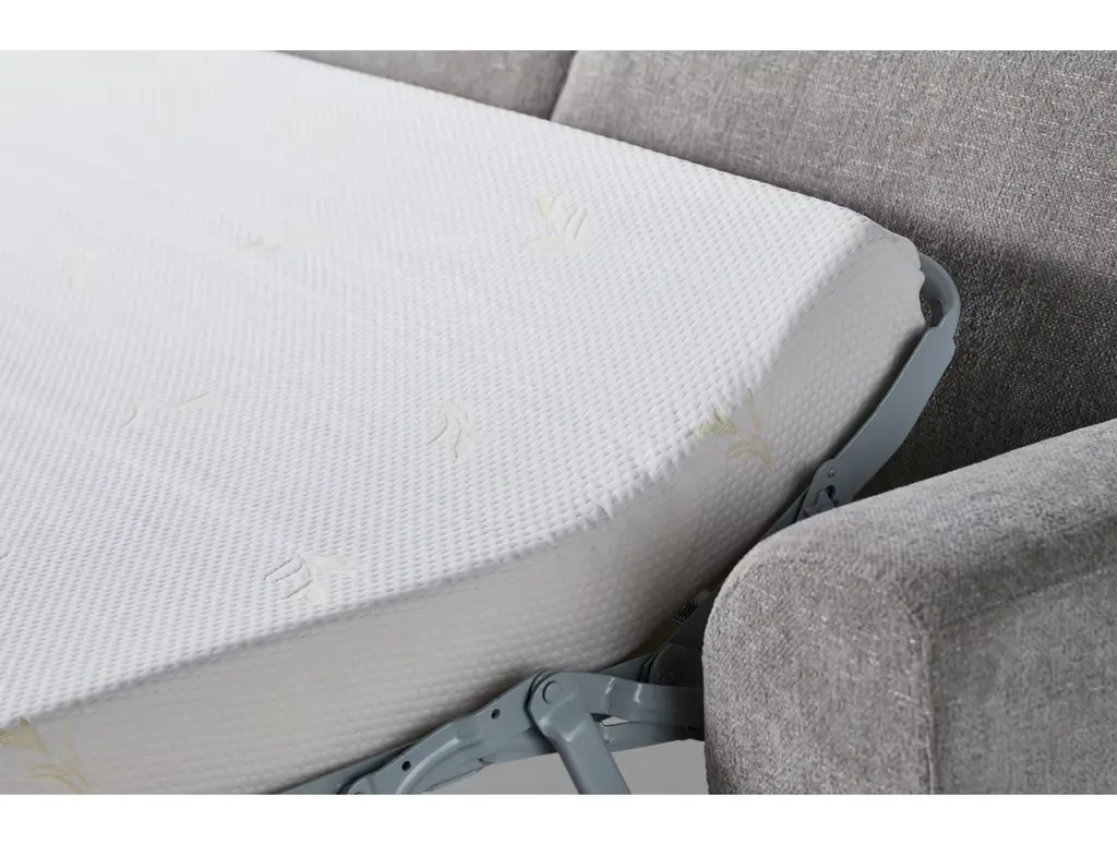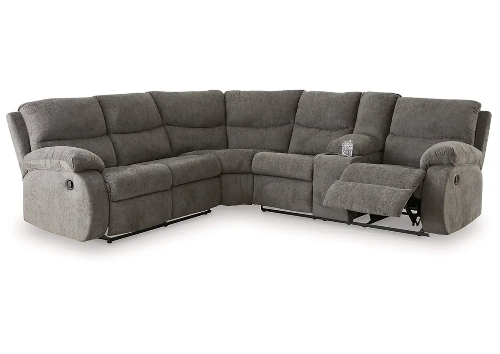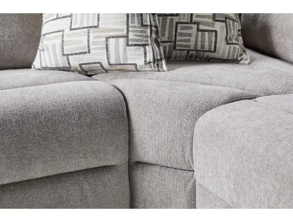 Maximize your seating options with the Debussy 3 Piece Sectional from Synergy Home Furnishings. This comfy contemporary sectional features plush channeled back cushions and sloped armrests. Includes a full size pull-out foam mattress to accommodate overnight guests. The console stores your remotes, and two cup holders keep beverages handy. Built-in USB ports let you charge your electronic device while you unwind. Includes four coordinating toss pillows for added comfort and style. Comes with sectional connectors.
