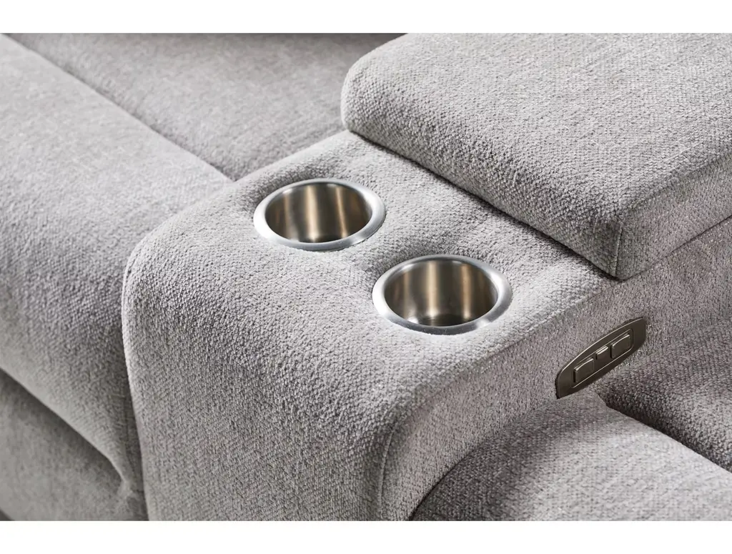 Debussy 3 Piece Power Reclining Sleeper Sectional With 2 Recliners, Tilt Headrest & Console