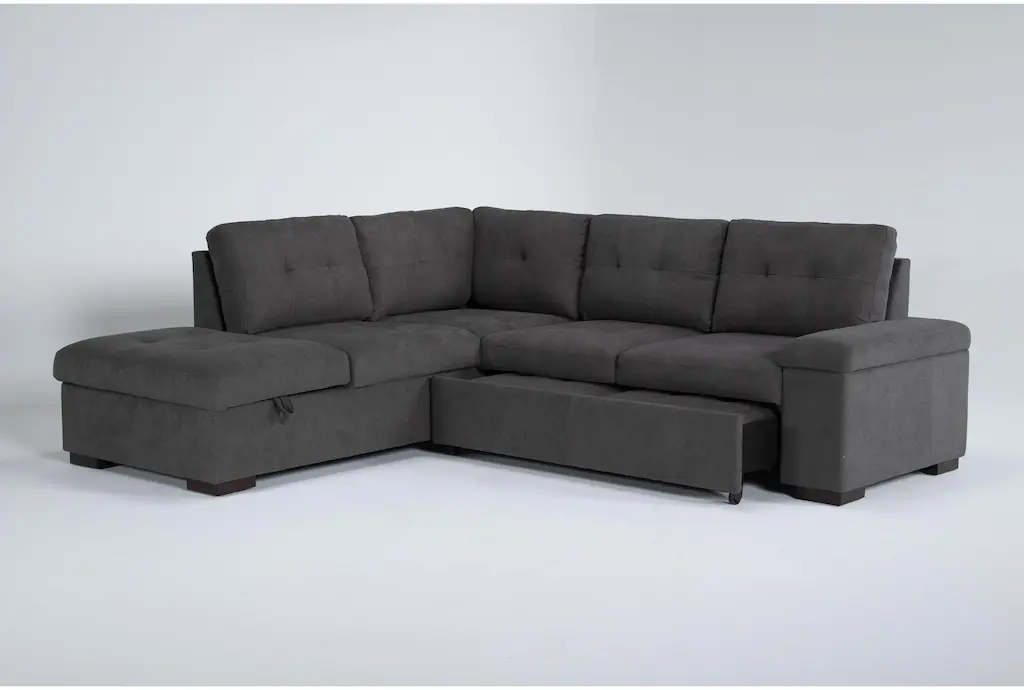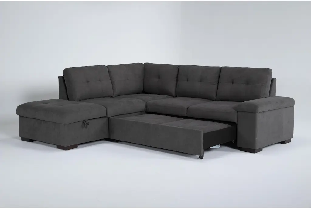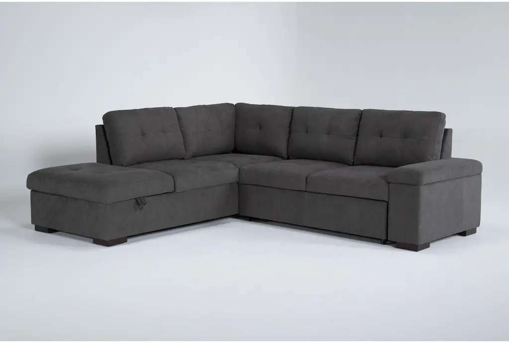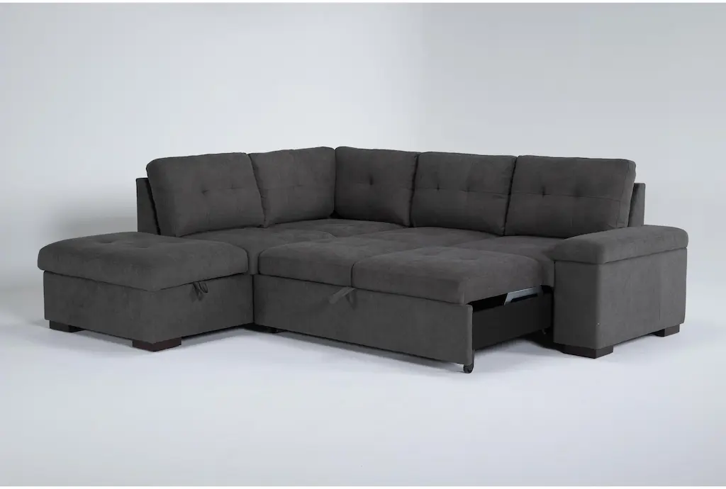 Flinn Grey Fabric 103" 2 Piece Convertible Futon Sleeper L-Shaped Sectional With Left Arm Facing Storage Chaise