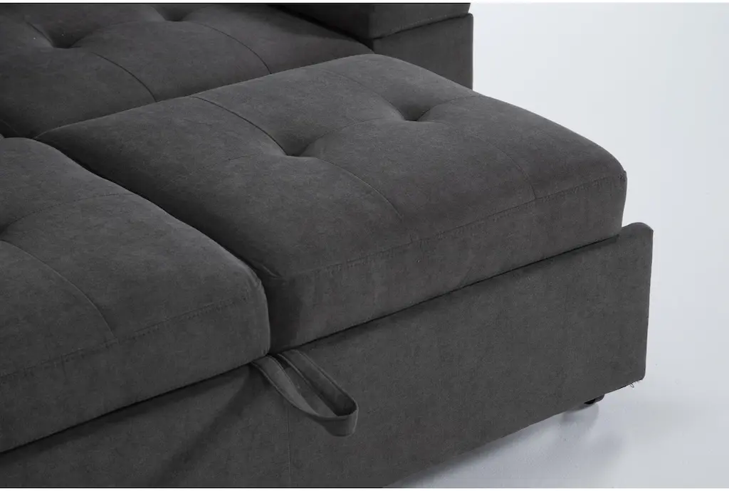 Nobody will be leaving your living room once they experience the many ways to relax and enjoy our Flinn convertible sectional. The design is available in spacious right-facing and left-facing configurations, which are perfectly sized for big families and gatherings. Plus, it includes a pop-out sleeper, so you can transition from daily lounging to evening snoozing seamlessly. Best of all, there’s a convenient storage chaise, where you can easily tuck away sheets, blankets and pillows for guests.
