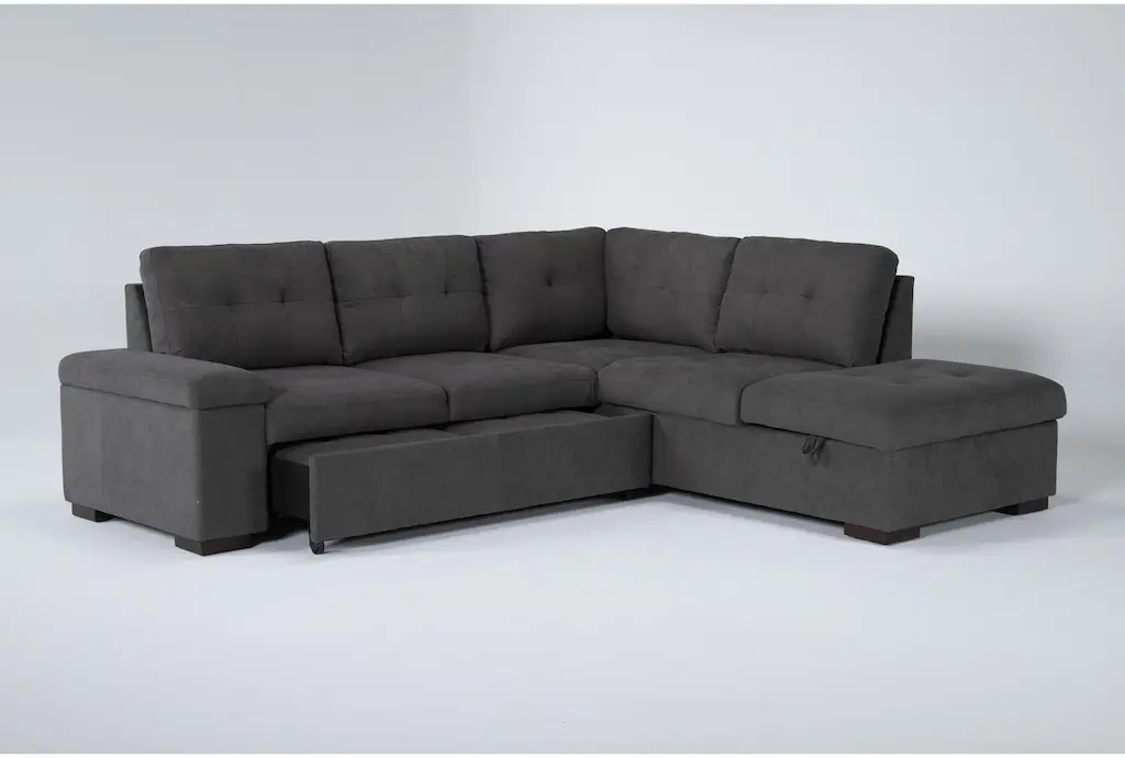 Flinn Grey Fabric 103" 2 Piece Convertible Futon Sleeper L-Shaped Sectional With Right Arm Facing Storage Chaise