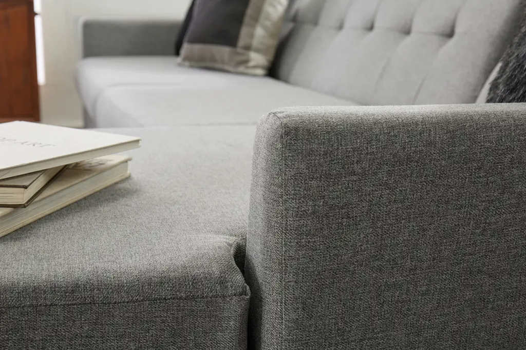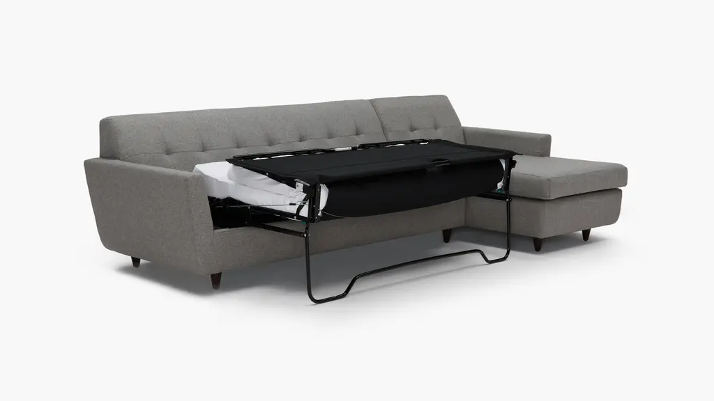 Spacious and sophisticated, the Hughes Sleeper Sectional adapts to any occasion—from family movie nights to holiday parties, weekend guests, and afternoon naps. This expansive, Mid-Century design offers a warm invitation via its tufted detailing and vintage outline. Its concealed mattress ensures that your overnight guests will sleep in style upon this timeless mainstay.
