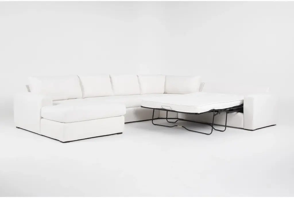 Isabella Ii Cream Beige 157" 4 Piece Full Sleeper Sectional With Left Arm Facing Chaise & Wedge Corner | Fabric