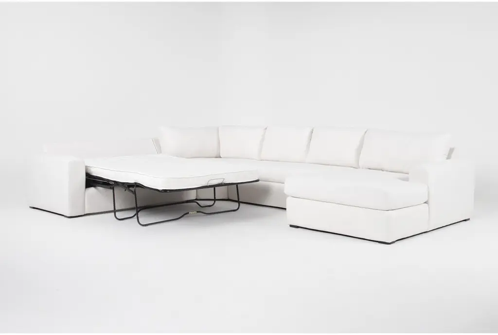 Isabella Ii Cream Beige 157" 4 Piece Full Sleeper Sectional With Right Arm Facing Chaise & Wedge Corner | Fabric
