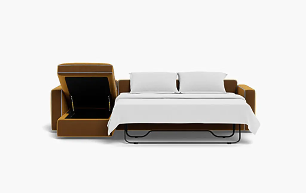 James beautifully marries modern design with a transitional feel. Its to-the-floor platform and hidden legs are sleek, while subtle crowns in the seat and arms keep it soft. In keeping with its linear design, James' wide arms and back frame are finished with structural piping for a balanced look. Top it all off with cozy side cushions, and you have yourself the modern, lounge-ready sofa of your dreams. Sleeper queen mattress dimensions: 60"W x 72"L x 5.5"H
