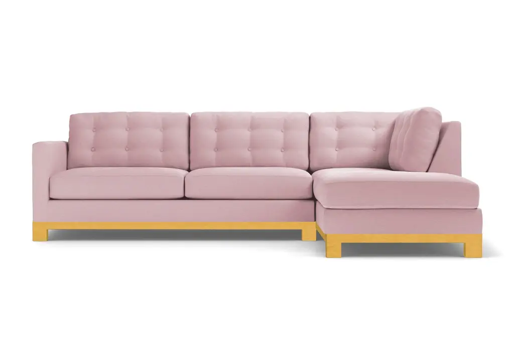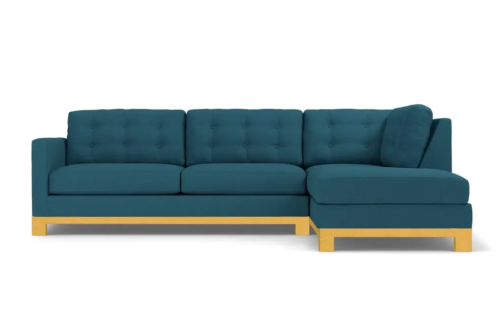 How can a sleeper sectional have the right to look this good? Seriously, it looks like it just walked off the set of "Mad Men." It features button-tufted back cushions and clean lines for a sophisticated feel. This stylish frame houses a Queen Size Mattress that is available in either our Deluxe Innerspring or our upgraded Memory Foam option. The solid wood base accentuates its modern style, which will look just stunning in your living room. We'll customize the Logan Drive in your choice of dozens of colors - from cream and cobalt to green apple and amethyst, you'll find the perfect shade for your home. Our upholstery is hypo-allergenic and breathable, so it's ideal for those who suffer from allergies. Pets and kids are no match for the Logan Drive since it's stain resistant and easy to clean. This sectional sofa bed is made in the United States and backed by a limited lifetime warranty. Add a bit of vintage glamour to your space with the Logan Drive 2pc Sleeper Sectional. A solid wood base and button tufted back cushions take this modern shape to an elevated level. The ultimate show piece for your stylish room.