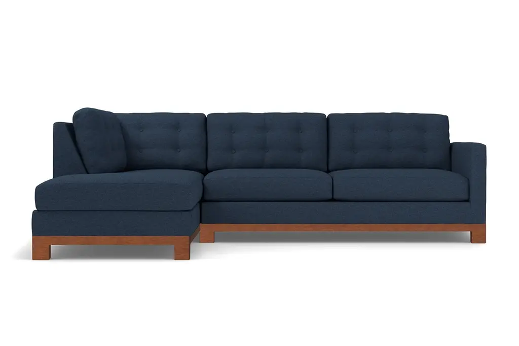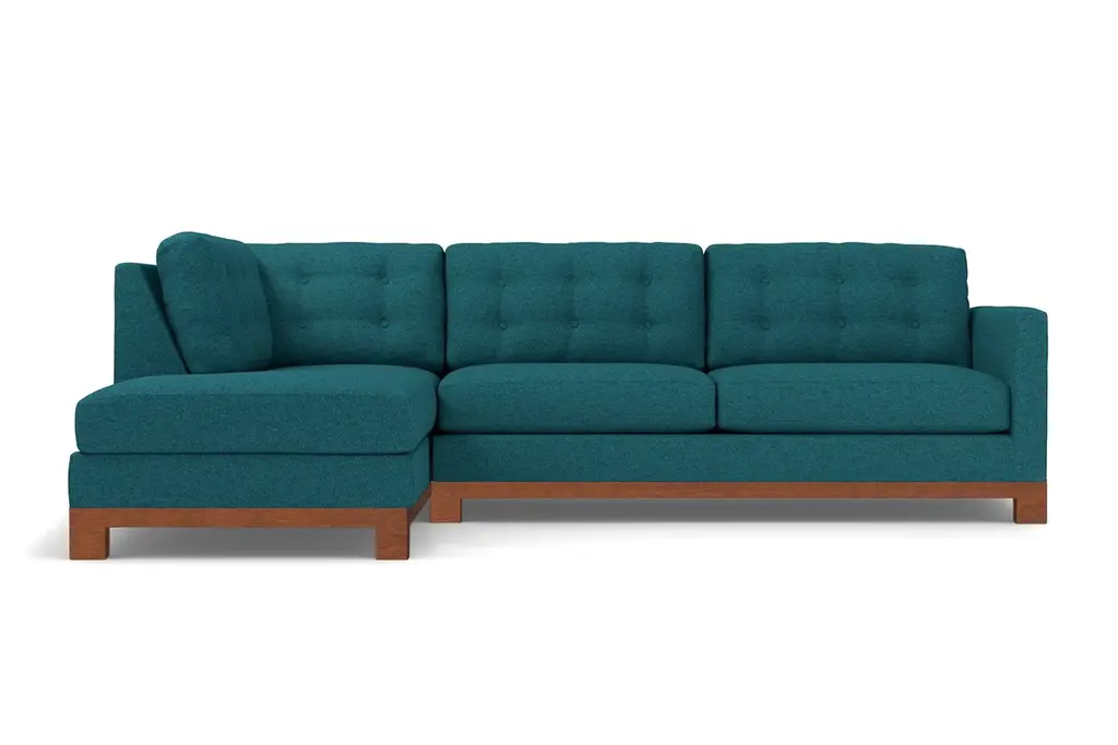 How can a sleeper sectional have the right to look this good? Seriously, it looks like it just walked off the set of "Mad Men." It features button-tufted back cushions and clean lines for a sophisticated feel. This stylish frame houses a Queen Size Mattress that is available in either our Deluxe Innerspring or our upgraded Memory Foam option. The solid wood base accentuates its modern style, which will look just stunning in your living room. We'll customize the Logan Drive in your choice of dozens of colors - from cream and cobalt to green apple and amethyst, you'll find the perfect shade for your home. Our upholstery is hypo-allergenic and breathable, so it's ideal for those who suffer from allergies. Pets and kids are no match for the Logan Drive since it's stain resistant and easy to clean. This sectional sofa bed is made in the United States and backed by a limited lifetime warranty. Add a bit of vintage glamour to your space with the Logan Drive 2pc Sleeper Sectional. A solid wood base and button tufted back cushions take this modern shape to an elevated level. The ultimate show piece for your stylish room.