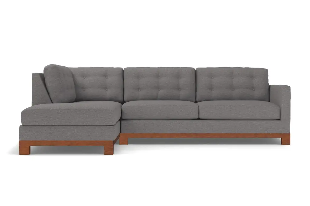 How can a sleeper sectional have the right to look this good? Seriously, it looks like it just walked off the set of "Mad Men." It features button-tufted back cushions and clean lines for a sophisticated feel. This stylish frame houses a Queen Size Mattress that is available in either our Deluxe Innerspring or our upgraded Memory Foam option. The solid wood base accentuates its modern style, which will look just stunning in your living room. We'll customize the Logan Drive in your choice of dozens of colors - from cream and cobalt to green apple and amethyst, you'll find the perfect shade for your home. Our upholstery is hypo-allergenic and breathable, so it's ideal for those who suffer from allergies. Pets and kids are no match for the Logan Drive since it's stain resistant and easy to clean. This sectional sofa bed is made in the United States and backed by a limited lifetime warranty. Add a bit of vintage glamour to your space with the Logan Drive 2pc Sleeper Sectional. A solid wood base and button tufted back cushions take this modern shape to an elevated level. The ultimate show piece for your stylish room.