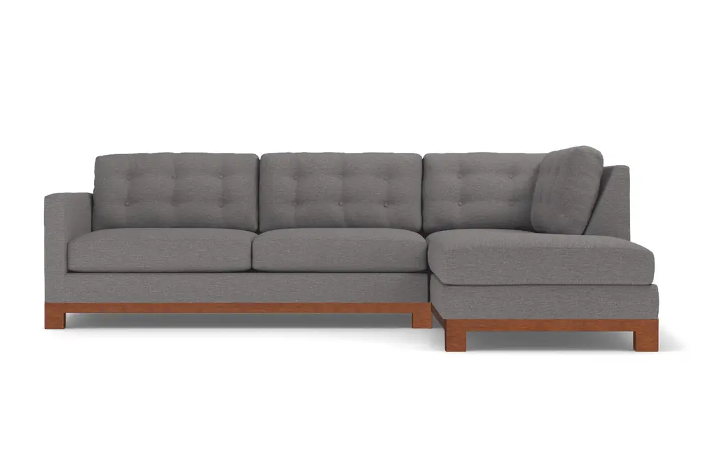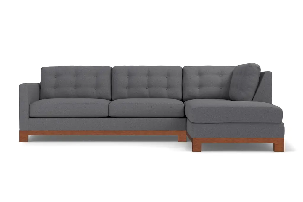 How can a sleeper sectional have the right to look this good? Seriously, it looks like it just walked off the set of "Mad Men." It features button-tufted back cushions and clean lines for a sophisticated feel. This stylish frame houses a Queen Size Mattress that is available in either our Deluxe Innerspring or our upgraded Memory Foam option. The solid wood base accentuates its modern style, which will look just stunning in your living room. We'll customize the Logan Drive in your choice of dozens of colors - from cream and cobalt to green apple and amethyst, you'll find the perfect shade for your home. Our upholstery is hypo-allergenic and breathable, so it's ideal for those who suffer from allergies. Pets and kids are no match for the Logan Drive since it's stain resistant and easy to clean. This sectional sofa bed is made in the United States and backed by a limited lifetime warranty. Add a bit of vintage glamour to your space with the Logan Drive 2pc Sleeper Sectional. A solid wood base and button tufted back cushions take this modern shape to an elevated level. The ultimate show piece for your stylish room.