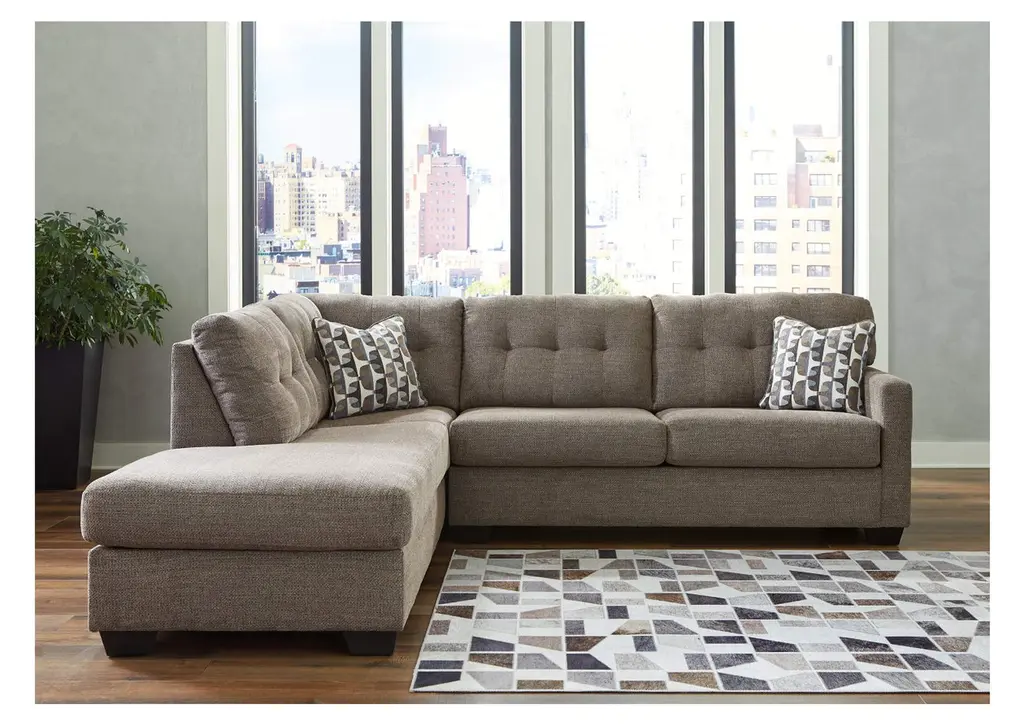 Reliable comfort, reimagined. Suitable for a variety of spaces, the Mahoney sleeper sectional with chaise invites you to say hello to approachable, everyday style. It expertly balances classic details, like a tufted back, with a contemporary structure. An included full sofa sleeper brings functionality to the forefront, while satisfyingly soft, multi-hued upholstery rounds out the relaxed feel of this smartly designed piece. Weight 280.000 lbs. (126kgs.)