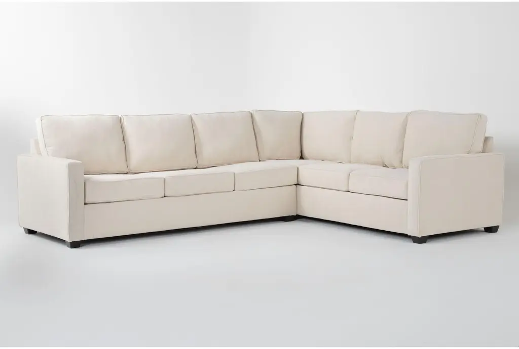 Mathers Cream Beige White Fabric 125" 2 Piece L-Shaped Sectional With Right Arm Facing Queen Memory Foam Sleeper Sofa Bed | Left Facing