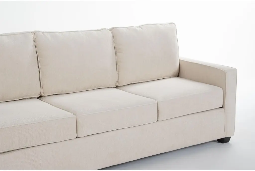 Experience the perfect blend of comfort and functionality with the Mathers Cream Beige White Fabric 125" 2 Piece L-Shaped Sectional. This sectional features a right arm facing queen memory foam sleeper sofa bed and a convenient ottoman, making it a versatile addition to any living space. Designed with a modern style, it seamlessly complements your decor while providing ample seating and sleeping options.