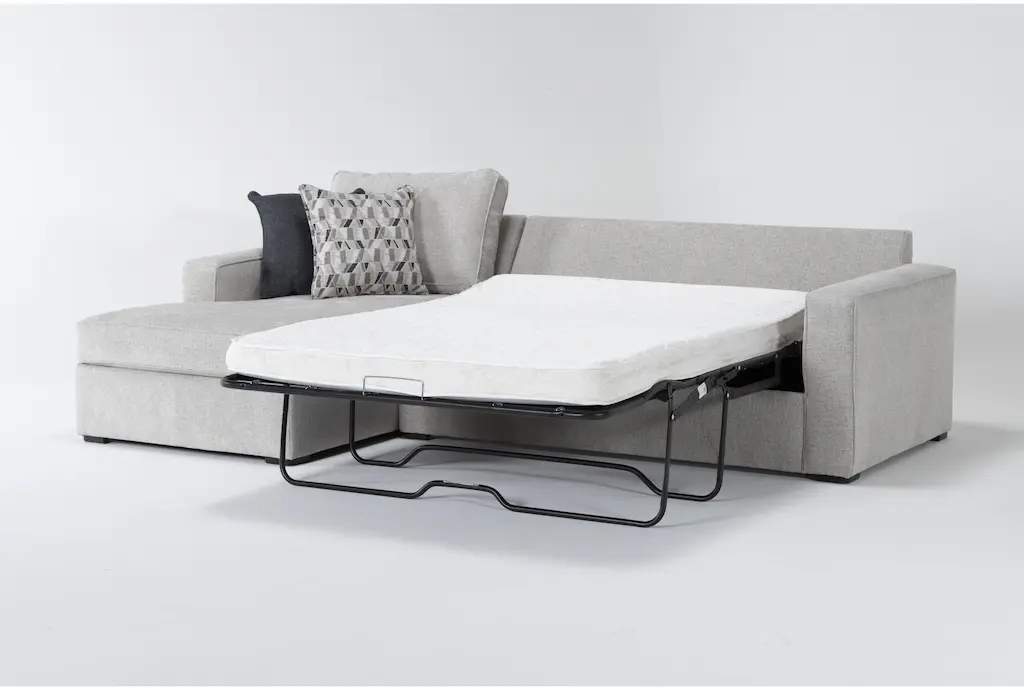 Monterey Beach Beige Grey Fabric 107" 2 Piece Modular Full Memory Foam Sleeper Sectional With Left Arm Facing Chaise | Track Arms