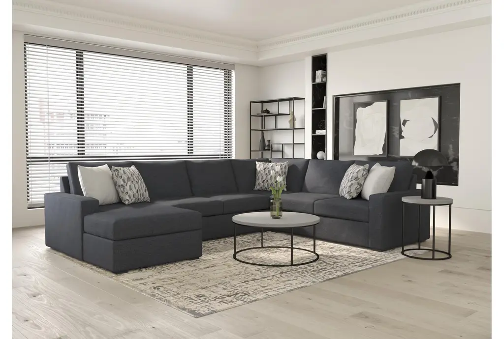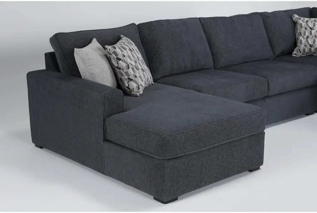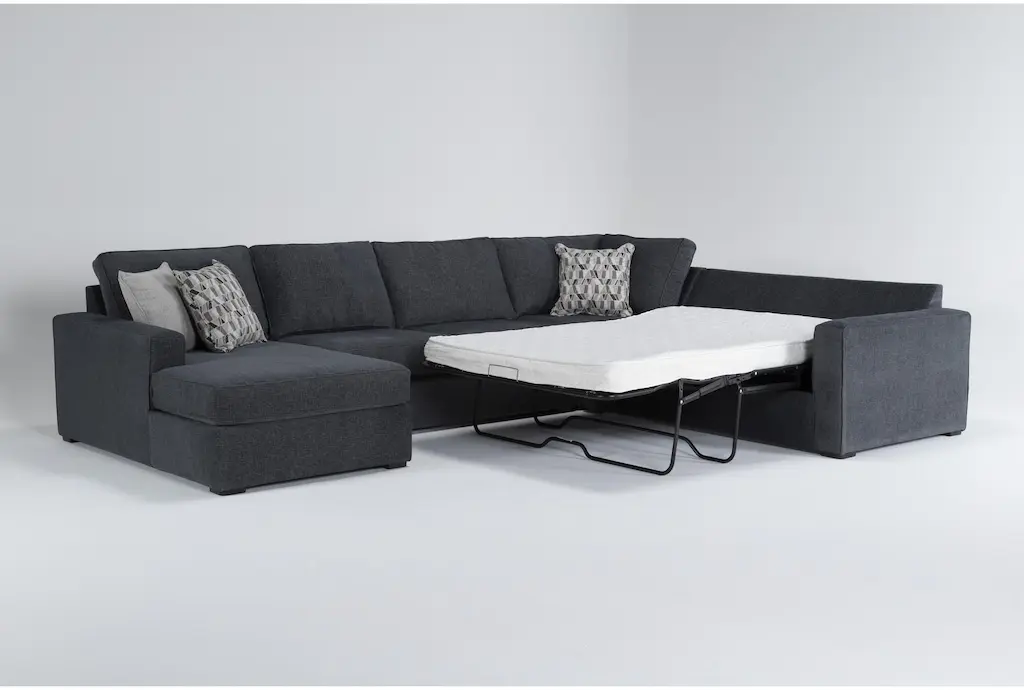 Monterey Twilight Blue Grey Fabric 140" 4 Piece Full Memory Foam Sleeper U-Shaped Sectional With Left Arm Facing Chaise | Track Arms