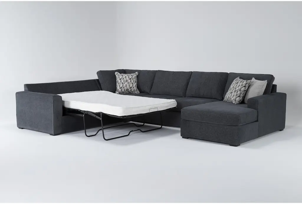 Monterey Twilight Blue Grey Fabric 140" 4 Piece Full Memory Foam Sleeper U-Shaped Sectional With Right Arm Facing Chaise | Track Arms