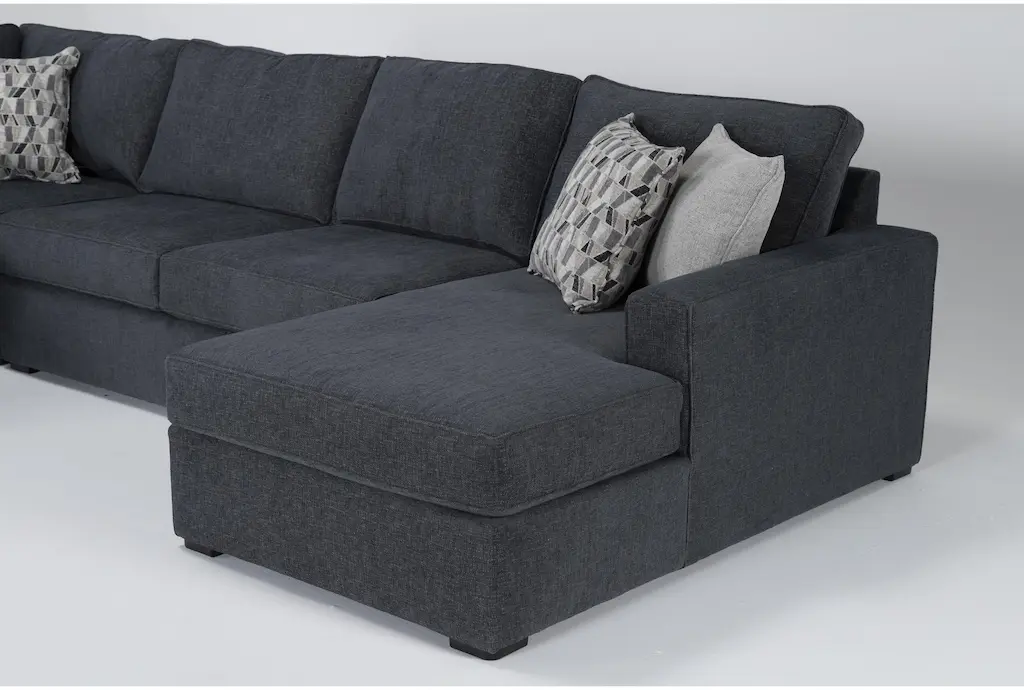The Monterey Twilight Blue Grey Fabric 140" 4 Piece Full Memory Foam Sleeper U-Shaped Sectional with Right Arm Facing Chaise is a versatile addition to your living room. This contemporary piece offers ample seating and a comfortable memory foam sleeper for overnight guests. Upholstered in 100% polyester fabric, this sectional provides both durability and comfort.