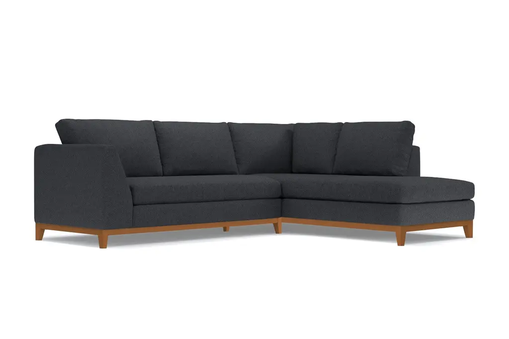 The Mulholland Drive 2-Pc Sectional Sleeper Sofa brings together form and function to transform your living space into a work of art. As stunning as the views along Mulholland Drive, this modern sectional bed will offer an instant upgrade to your living room style. Its two-piece configuration creates an intimate setting for entertaining guests or the ultimate spot to sprawl out for an afternoon of binge-watching Netflix. And hidden inside, there’s a comfortable and supportive mattress for guests to stay overnight. The Mulholland Drive is a stunning addition to our popular Mulholland Collection. Available in over 60 pet-friendly and kid-friendly fabrics and three glamorous wood stains, the Mulholland Drive 2-Piece Sleeper Sectional is perfect for your modern home, apartment or small space. A number of design features make the Mulholland Drive 2-Piece Sleeper Sectional a sleek addition to any living room. The low-profile silhouette includes classic track arms and plush, high-density foam cushions. The Mulholland Drive's solid wood base adds to its modern and elevated look, while its understated, minimalist design will coordinate well with your existing decor. The seat cushions are detached, so you can also reverse or flip them as needed. One of the best features of this Mulholland sleeper sofa is hidden away inside. The full-size mattress glides out smoothly on the easy-fold steel mechanism, which comes with a one-year manufacturer's guarantee. Pamper your guests by choosing either our standard deluxe innerspring or upgrading to our memory foam for the ultimate in comfort. The Mulholland Drive 2pc Sectional Sleeper Sofa is the versatile and stylish couch you’ve been searching for. It’s also one of the most customizable sofas we offer. In addition to selecting your fabric color, leg finish and mattress type, you also get to choose a left-side (LAF) or right-side (RAF) sleeper sectional configuration. Order now and we’ll begin building your Mulholland Drive sofa to order in our Los Angeles, California factory (made in the USA!).