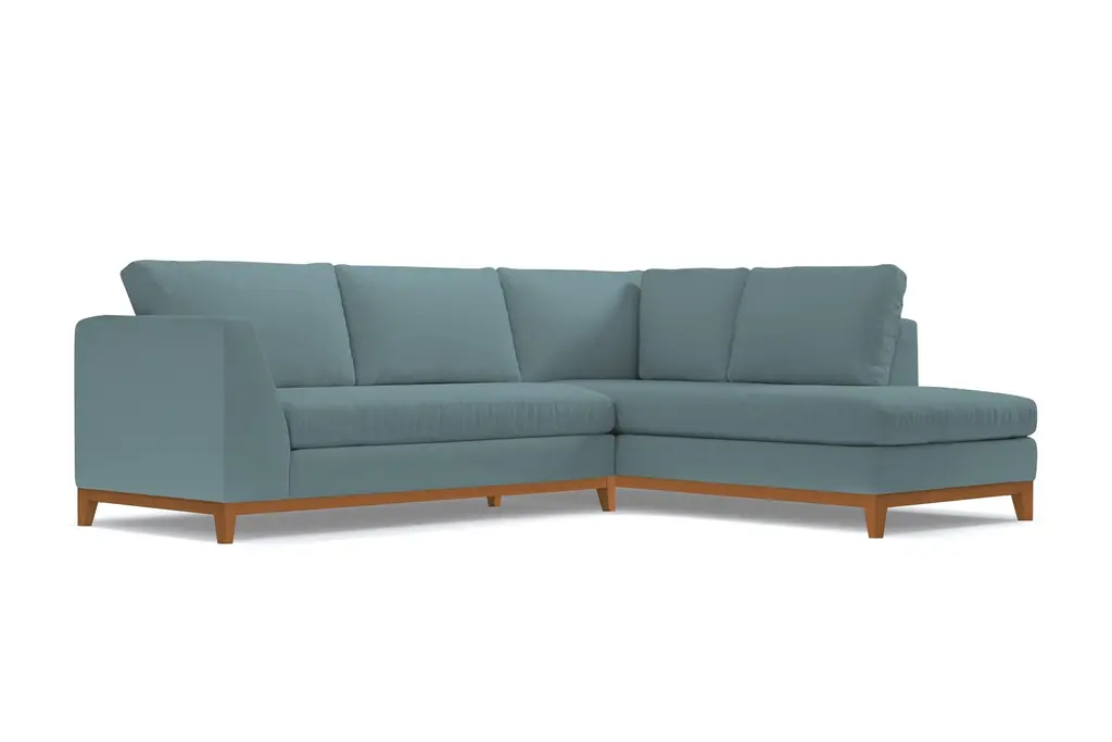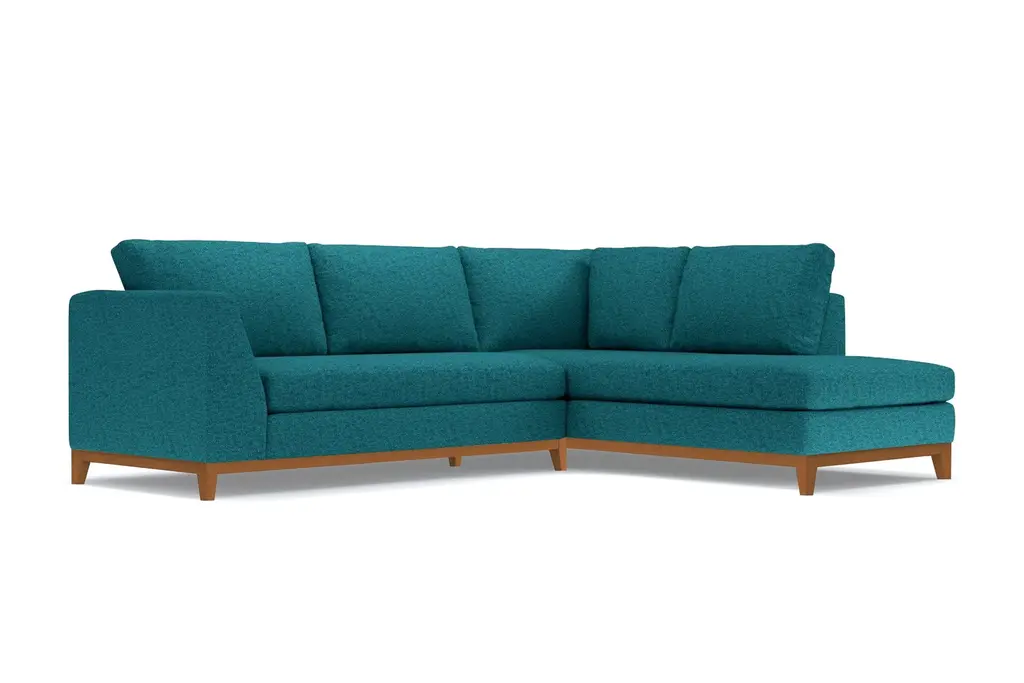 The Mulholland Drive 2-Pc Sectional Sleeper Sofa brings together form and function to transform your living space into a work of art. As stunning as the views along Mulholland Drive, this modern sectional bed will offer an instant upgrade to your living room style. Its two-piece configuration creates an intimate setting for entertaining guests or the ultimate spot to sprawl out for an afternoon of binge-watching Netflix. And hidden inside, there’s a comfortable and supportive mattress for guests to stay overnight. The Mulholland Drive is a stunning addition to our popular Mulholland Collection. Available in over 60 pet-friendly and kid-friendly fabrics and three glamorous wood stains, the Mulholland Drive 2-Piece Sleeper Sectional is perfect for your modern home, apartment or small space. A number of design features make the Mulholland Drive 2-Piece Sleeper Sectional a sleek addition to any living room. The low-profile silhouette includes classic track arms and plush, high-density foam cushions. The Mulholland Drive's solid wood base adds to its modern and elevated look, while its understated, minimalist design will coordinate well with your existing decor. The seat cushions are detached, so you can also reverse or flip them as needed. One of the best features of this Mulholland sleeper sofa is hidden away inside. The full-size mattress glides out smoothly on the easy-fold steel mechanism, which comes with a one-year manufacturer's guarantee. Pamper your guests by choosing either our standard deluxe innerspring or upgrading to our memory foam for the ultimate in comfort. The Mulholland Drive 2pc Sectional Sleeper Sofa is the versatile and stylish couch you’ve been searching for. It’s also one of the most customizable sofas we offer. In addition to selecting your fabric color, leg finish and mattress type, you also get to choose a left-side (LAF) or right-side (RAF) sleeper sectional configuration. Order now and we’ll begin building your Mulholland Drive sofa to order in our Los Angeles, California factory (made in the USA!).