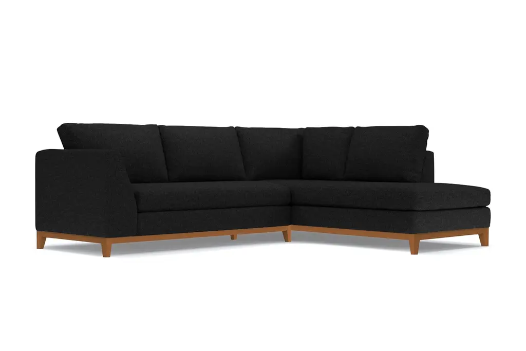 The Mulholland Drive 2-Pc Sectional Sleeper Sofa brings together form and function to transform your living space into a work of art. As stunning as the views along Mulholland Drive, this modern sectional bed will offer an instant upgrade to your living room style. Its two-piece configuration creates an intimate setting for entertaining guests or the ultimate spot to sprawl out for an afternoon of binge-watching Netflix. And hidden inside, there’s a comfortable and supportive mattress for guests to stay overnight. The Mulholland Drive is a stunning addition to our popular Mulholland Collection. Available in over 60 pet-friendly and kid-friendly fabrics and three glamorous wood stains, the Mulholland Drive 2-Piece Sleeper Sectional is perfect for your modern home, apartment or small space. A number of design features make the Mulholland Drive 2-Piece Sleeper Sectional a sleek addition to any living room. The low-profile silhouette includes classic track arms and plush, high-density foam cushions. The Mulholland Drive's solid wood base adds to its modern and elevated look, while its understated, minimalist design will coordinate well with your existing decor. The seat cushions are detached, so you can also reverse or flip them as needed. One of the best features of this Mulholland sleeper sofa is hidden away inside. The full-size mattress glides out smoothly on the easy-fold steel mechanism, which comes with a one-year manufacturer's guarantee. Pamper your guests by choosing either our standard deluxe innerspring or upgrading to our memory foam for the ultimate in comfort. The Mulholland Drive 2pc Sectional Sleeper Sofa is the versatile and stylish couch you’ve been searching for. It’s also one of the most customizable sofas we offer. In addition to selecting your fabric color, leg finish and mattress type, you also get to choose a left-side (LAF) or right-side (RAF) sleeper sectional configuration. Order now and we’ll begin building your Mulholland Drive sofa to order in our Los Angeles, California factory (made in the USA!).