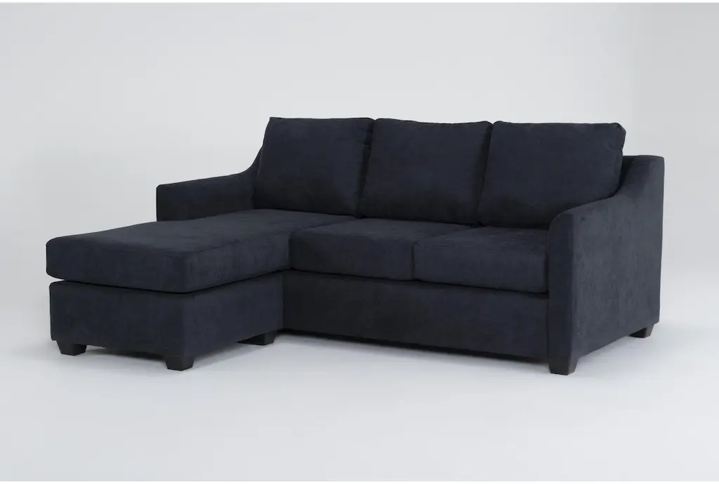 Porthos Midnight Blue Fabric 80" Queen Memory Foam Sleeper Sofa Bed With Reversible Chaise | Loose Reversible Back