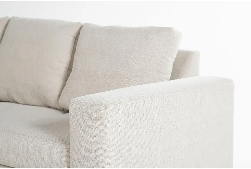 The Sebastian Cream White Beige Fabric 111" 2 Piece Convertible Futon Sleeper Sectional with Left Arm Facing Storage Chaise is a versatile and stylish addition to any living room. Its contemporary design and Venus Cream color make it a perfect fit for modern spaces. The sectional features track arms and ample storage, providing both comfort and functionality.