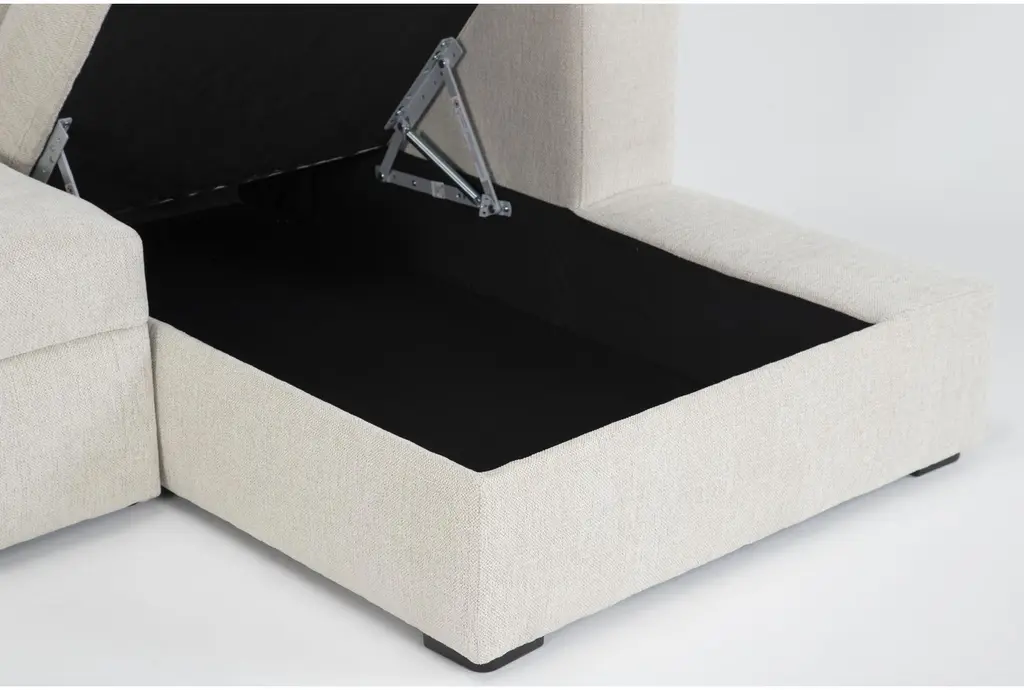 Sebastian Cream White Beige Fabric 111" 2 Piece Convertible Futon Sleeper Sectional With Right Arm Facing Storage Chaise | Track Arms