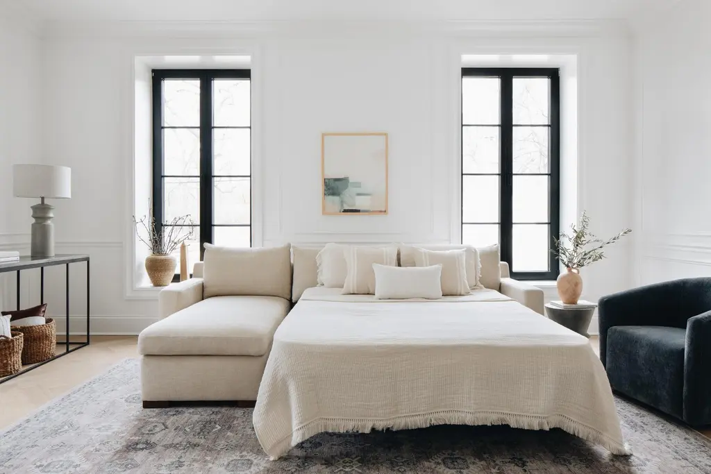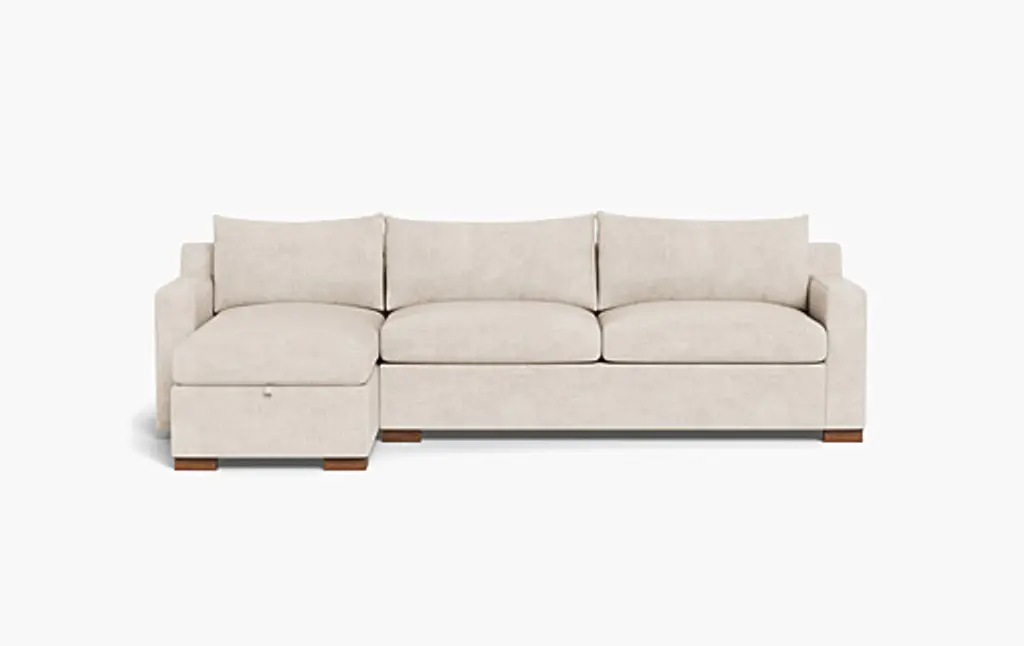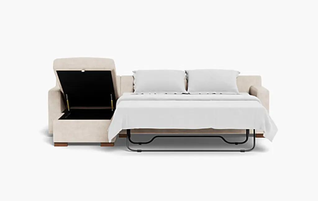 Sloan strikes an ideal balance between sleek and soft. Take, for instance, the crisp lines of its track arm, which are offset by a subtle taper near the back. The Sloan custom sleeper sectional reflects a modern influence, yet is approachable and livable. It's no wonder it feels right in a variety of decors, whether modern or more traditional. Ideal for smaller spaces or busier homes, the Sloan Sleeper customized with built-in storage maximizes your space so you can easily tuck away books and toys (and make room for overnight guests). Sleeper queen mattress dimensions: 60"W x 72"L x 5.5"H