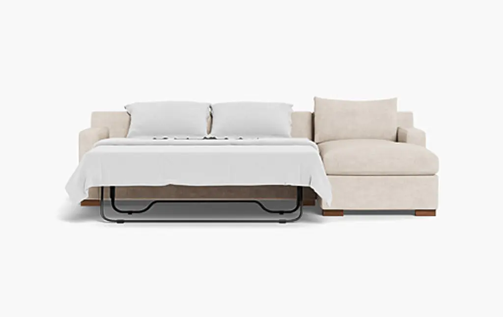 Sloan strikes an ideal balance between sleek and soft. Take, for instance, the crisp lines of its track arm, which are offset by a subtle taper near the back. The Sloan custom sleeper sectional reflects a modern influence, yet is approachable and livable. It's no wonder it feels right in a variety of decors, whether modern or more traditional. Short on square footage? The sofa-meets-bed Sloan Sleeper is an ideal option for small spaces and studio apartments. Sleeper queen mattress dimensions: 60"W x 72"L x 5.5"H