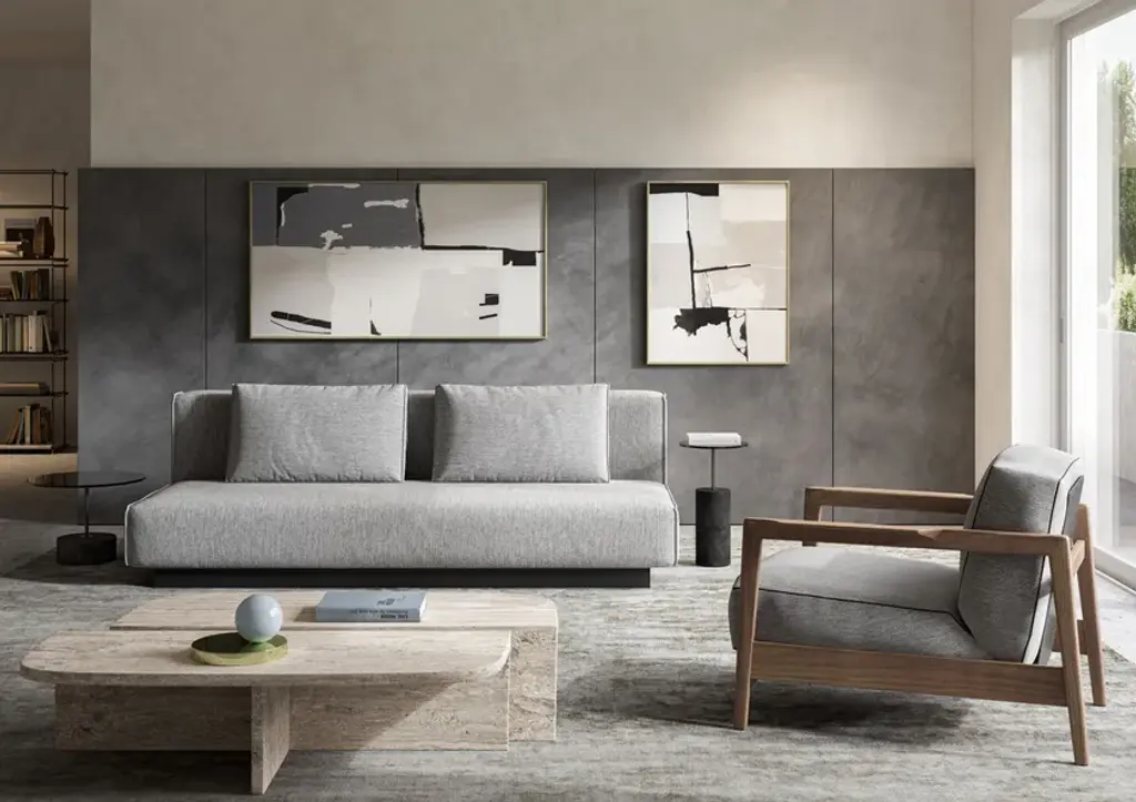 The simplicity of design and the functionality of technique meet our simple needs.Technical featuresFrame: wooden slatted base. Steel frame.Seat padding: polyurethane foam with different densities, covered with heated bonded polyester fibreBack padding: polyurethane foam with different densities, covered with heated bonded polyester fibreBack cushions: silicone polyester fibre covered with 100% cotton liningFeet: basement in black matt lacquered woodCover: fabric or leather cover. Fabric cover completely removableMechanism: slide the seat and fold the backrest forwardMechanism frame: highly resistant steel. Epoxy powder coatingBed bases: orthopedic with wooden slats