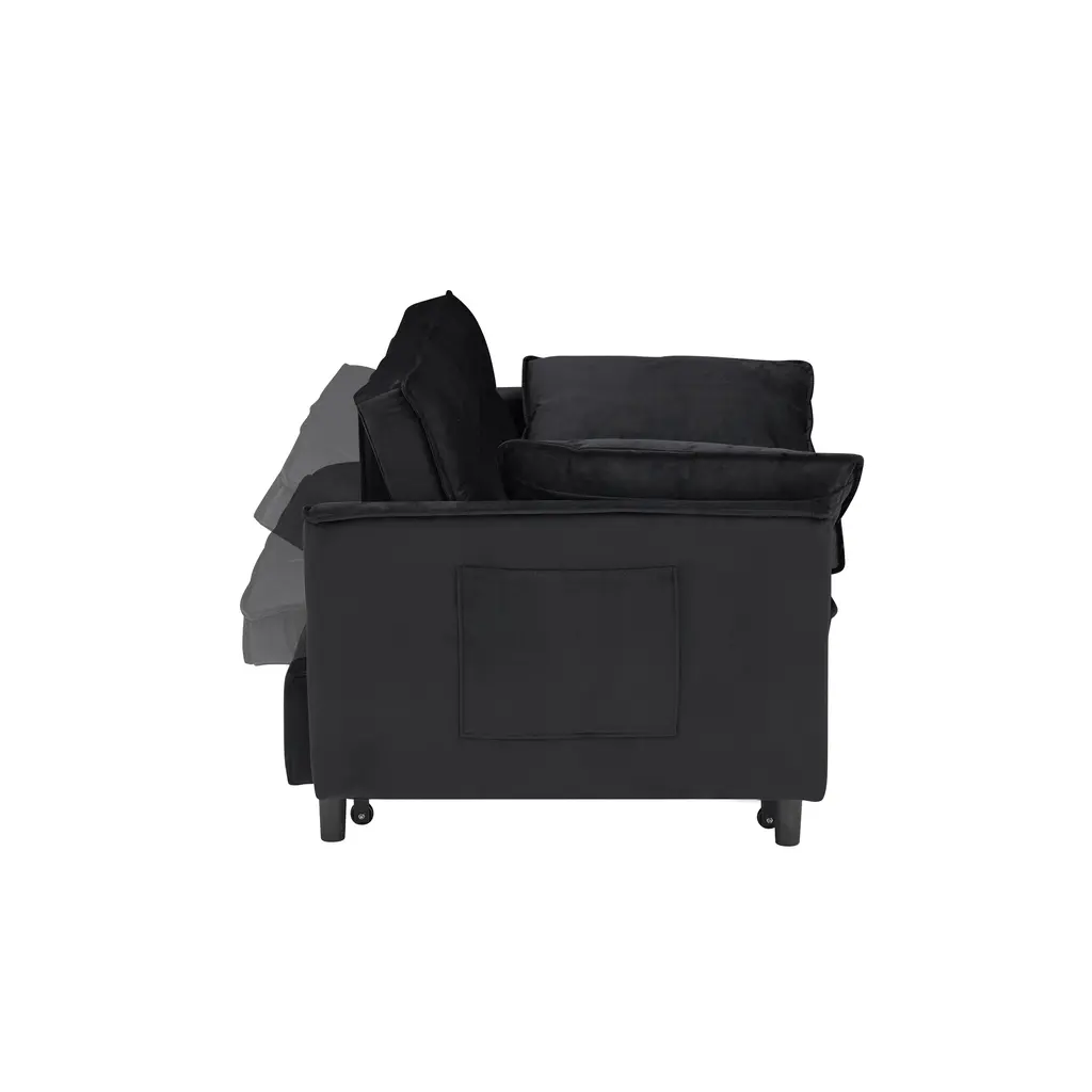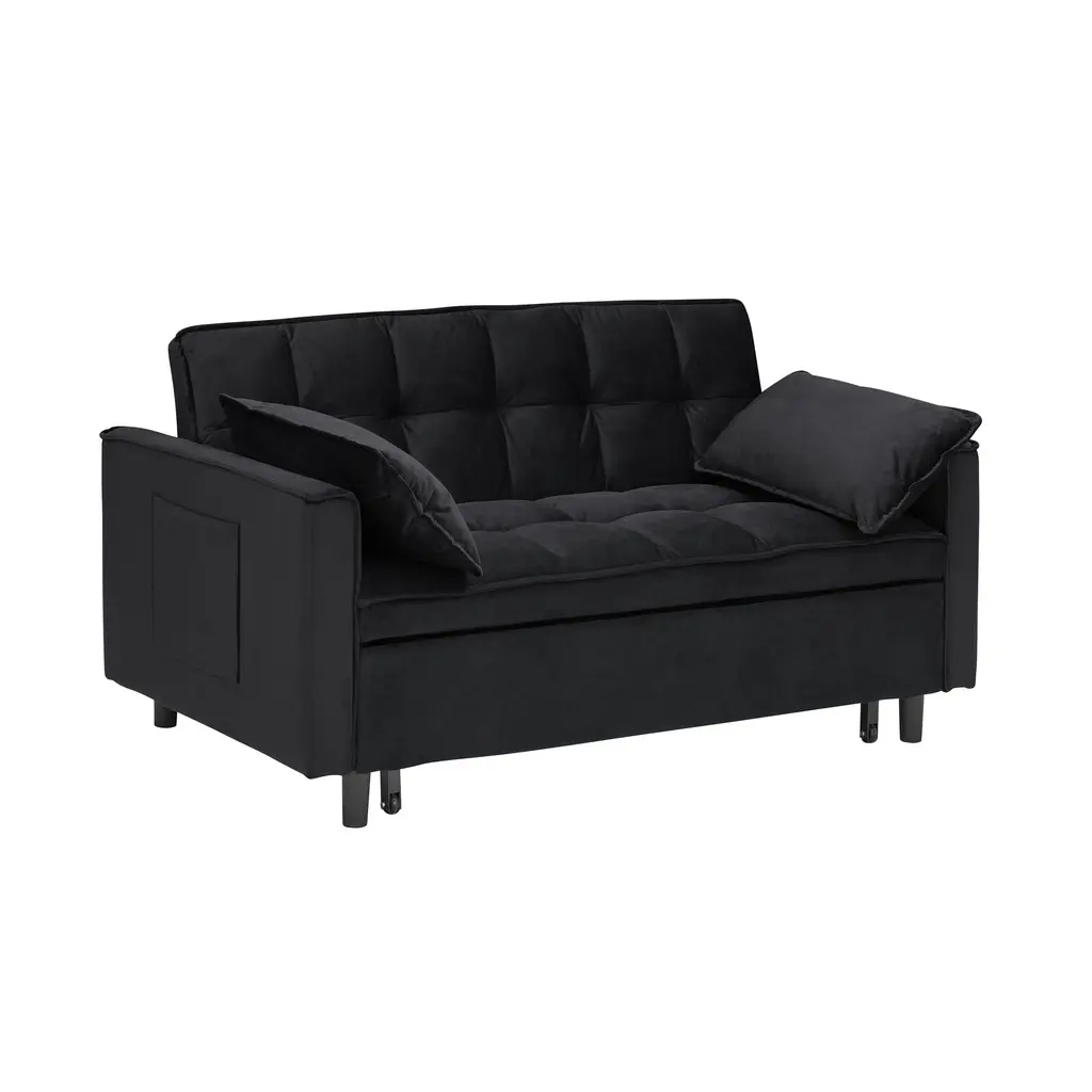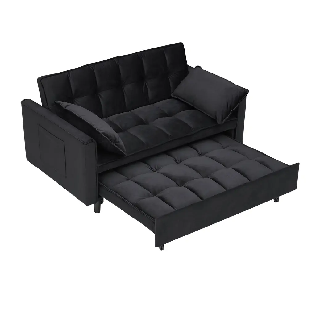 3-In-1 Convertible Sleeper Loveseat Sofa Bed Pullout Bed, 55-Inch Black Velvet Loveseat Futon Couch With Adjustable Backrest - Black