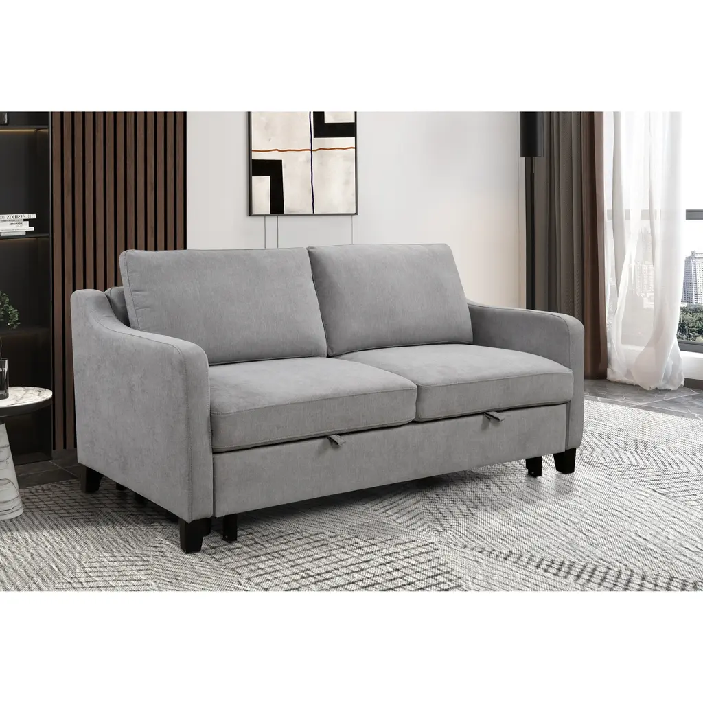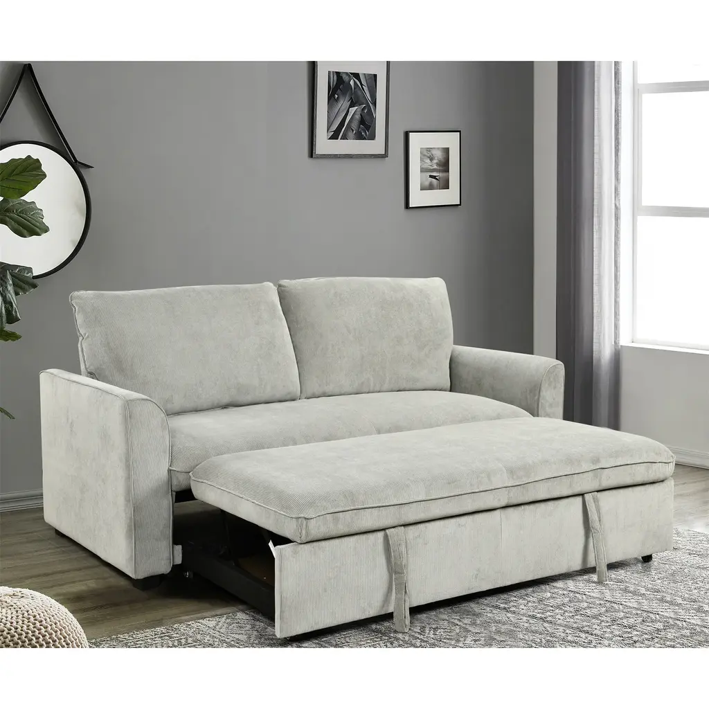 3 In 1 Modern Convertible Sleeper Sofa Bed, Loveseat Futon Sofa Couch W/pull Out Bed And Reclining Backrest - Grey+white Matte