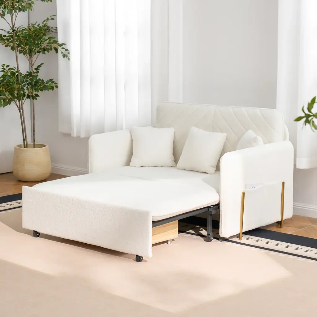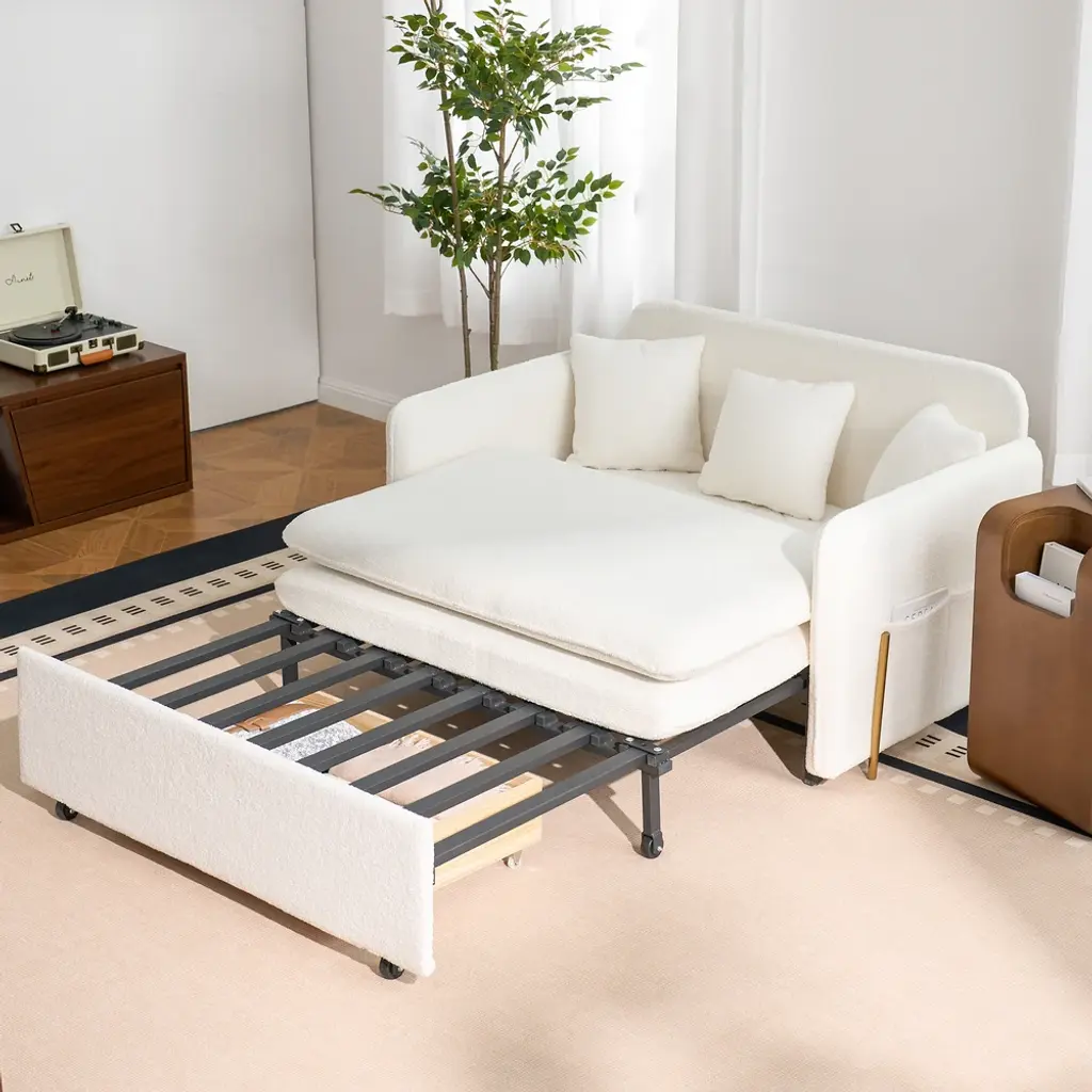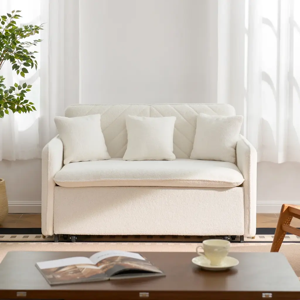 54" Full 2-Seater White Boucle Convertible Sleeper Sofa