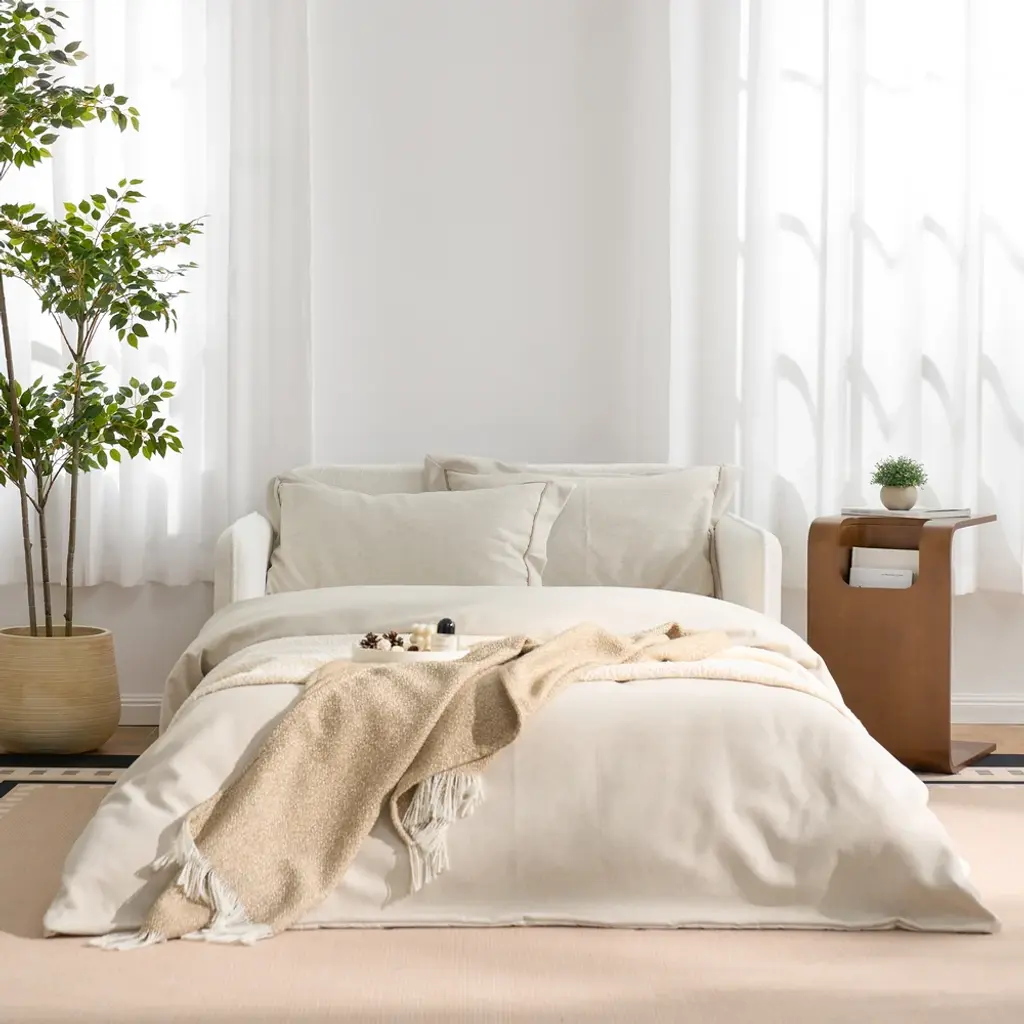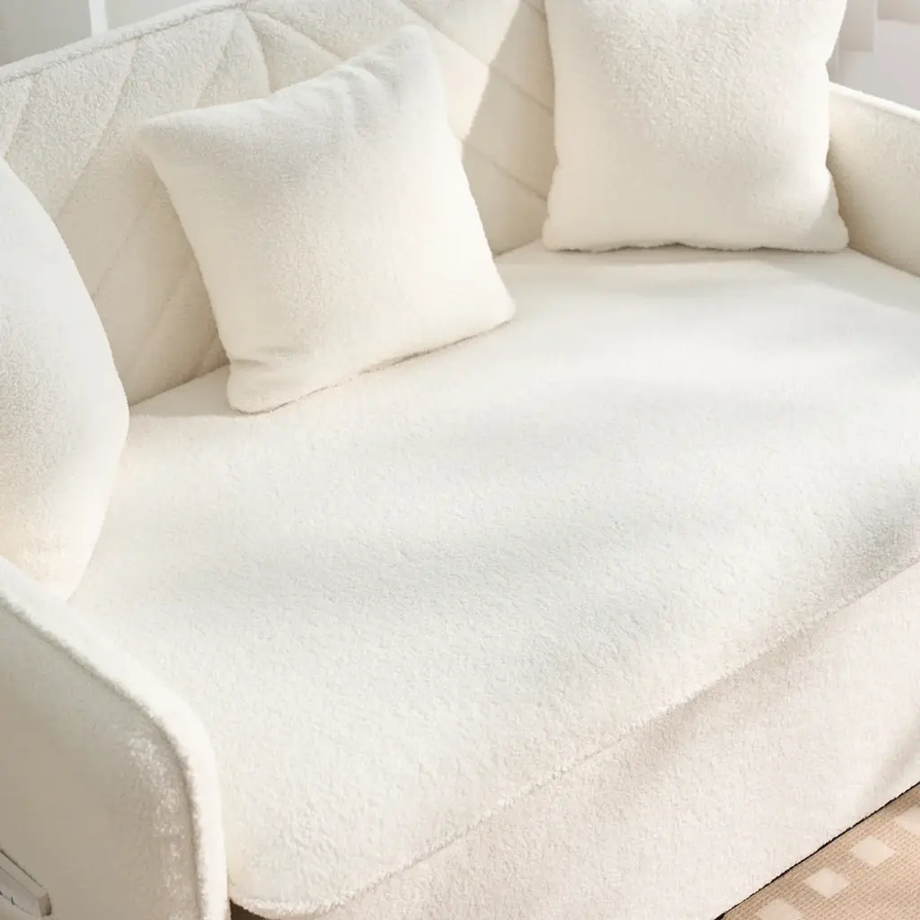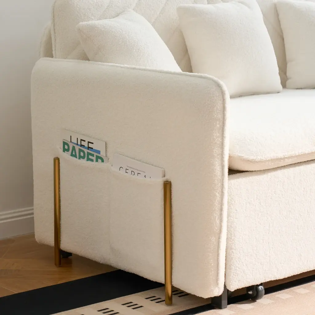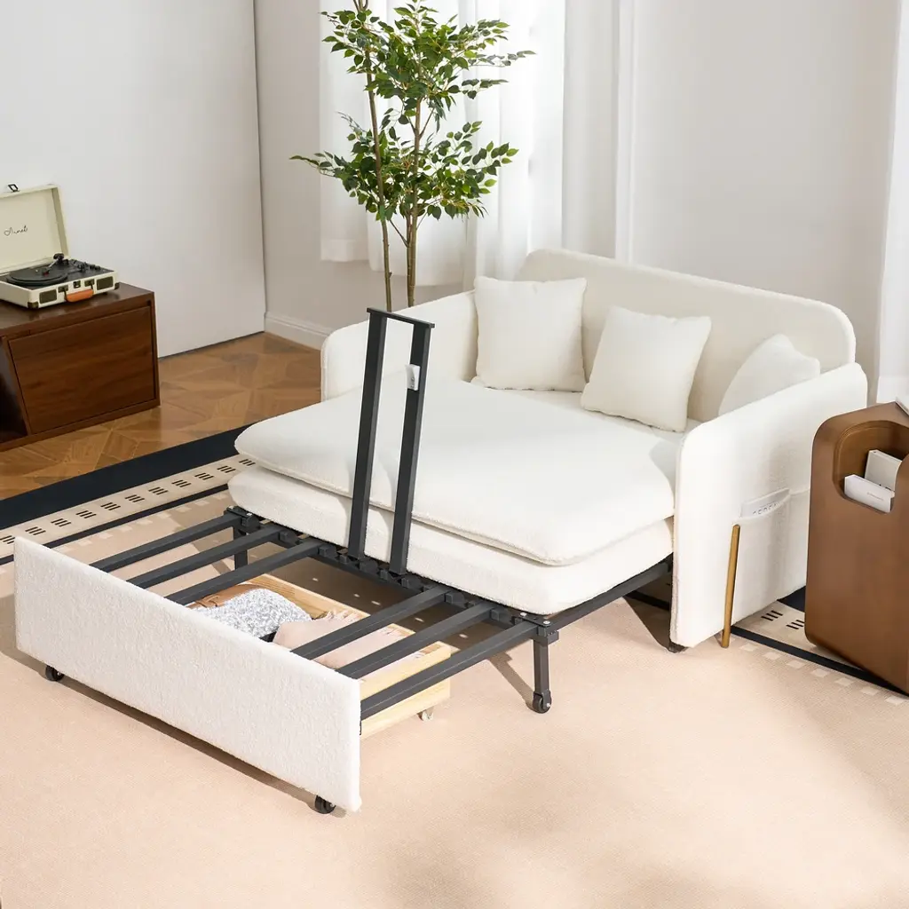 54" Full 2-Seater White Boucle Convertible Sleeper Sofa