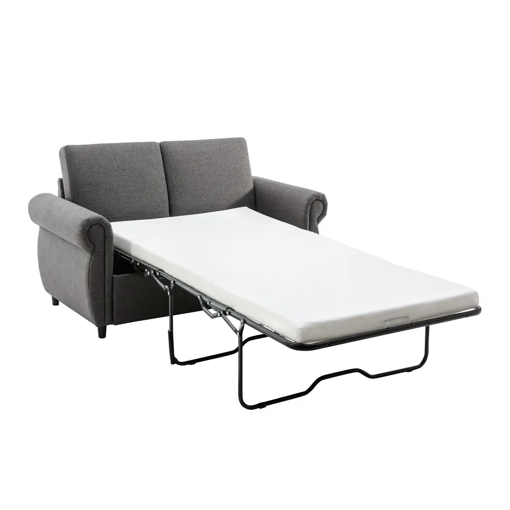 ▷Product Details: Overall Dimension 57.9" (L) * 28.5" (W) *35.8" (H) Detail Dimension Please refer to the image Package Dimension Please refer to specification page Package Weight Please refer to specification page Product Weight 120.15(lb) Weight Capacity 400 lbs (181.44 kg) Upholstery Material Linen Frame Material Plywood Seat Construction Pocket Spring+Foam Leg Material Rubber wood Removable Backrest Yes Removable Backrest Cover No Removable Cushion Yes Removable Cushion Cover No Set Includes Loveseat + Mattress Product Care Dust regularly. Clean gently with a clean, slightly damp cloth. Professional cleaning is recommended. Avoid direct sunlight. Never apply or clean with harsh chemicals. Assembly Required About 30 Minutes Notes Manual measurement has been used, there may be some reasonable error. All the pictures are taken by actual samples, slight chromatic aberration may occur due to lighting or display. ▷Versatile Pull Out Sleeper Sofa - Accommodate your guests, have your kid's friends for a sleep over, or make a quick set up even in the office to catch your noon snooze. Mechanism to ensure conversion between seating ▷ sleeping positions. ▷Comfortable Memory Foam Mattress - This sofa mattress is carefully designed with memory foam, providing unmatched comfort and quality. The memory foam conforms to the body, aligning the neck and spine, allowing the user to relax and enjoy a good night's sleep. ▷Superior Build - With premium quality steel tubing, double reinforcements, and stabilizing legs, the steel folding cot sturdily maintains balance with no worry of toppling over. Breathable linen fabric and high-density foam upholstery give a soft feeling and excellent support. ▷Suitable for Any Scene - This loveseat sleeper features simple design gives it a minimalist feel that can perfectly match with your home decor. The compact design makes the sofa perfect for apartments, dorms and studios. ▷USB Charging Design - The sofa bed is equipped with USB charging ports, conveniently located on the side. Keep your devices charged without having to leave the comfort of your sofa.