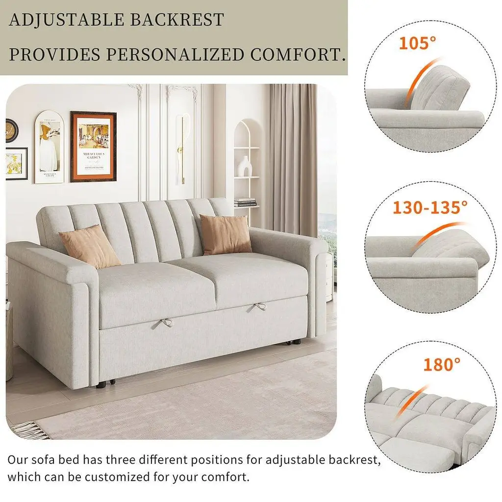 61 “W Modern Convertible Soft Cushion Sofa Pull Bed - Beige